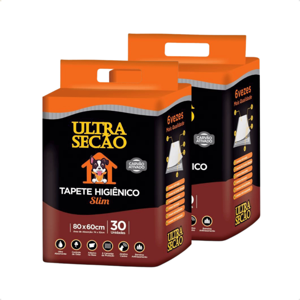 Kit 2 Tapete Higiênico Cães Carvão Ativado 80x60 30un Ultra Secão + Brinde