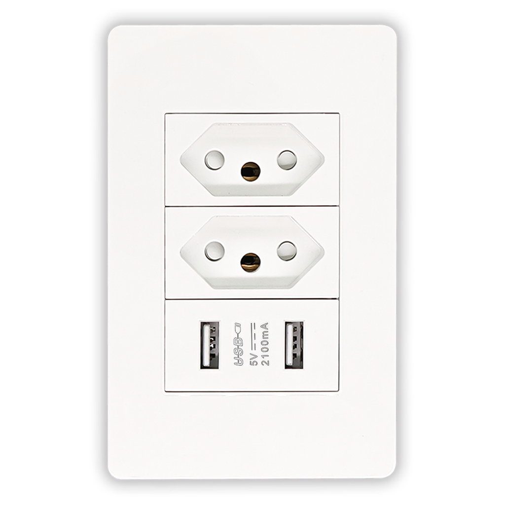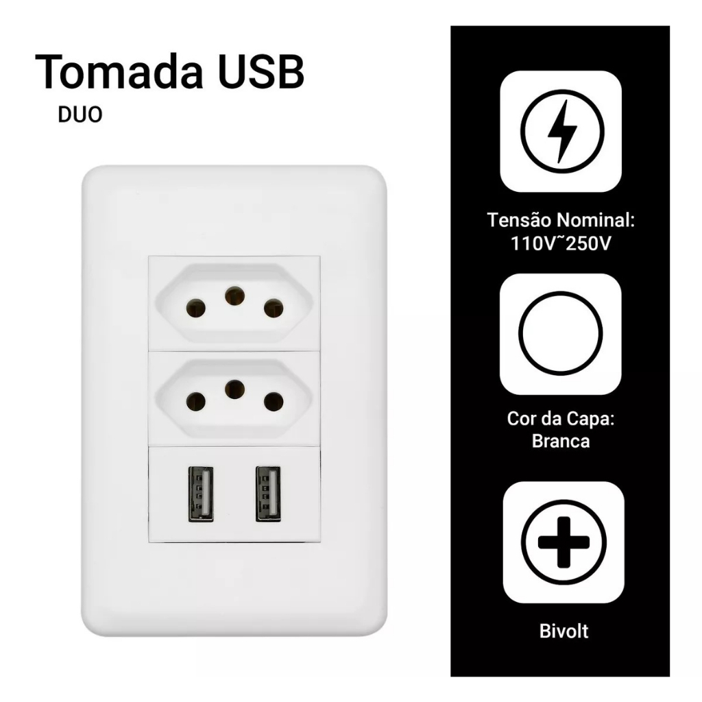 Kit 2 Tomada Usb Parede Duo Bivolt Dupla Conjunto Carregador Alimentação