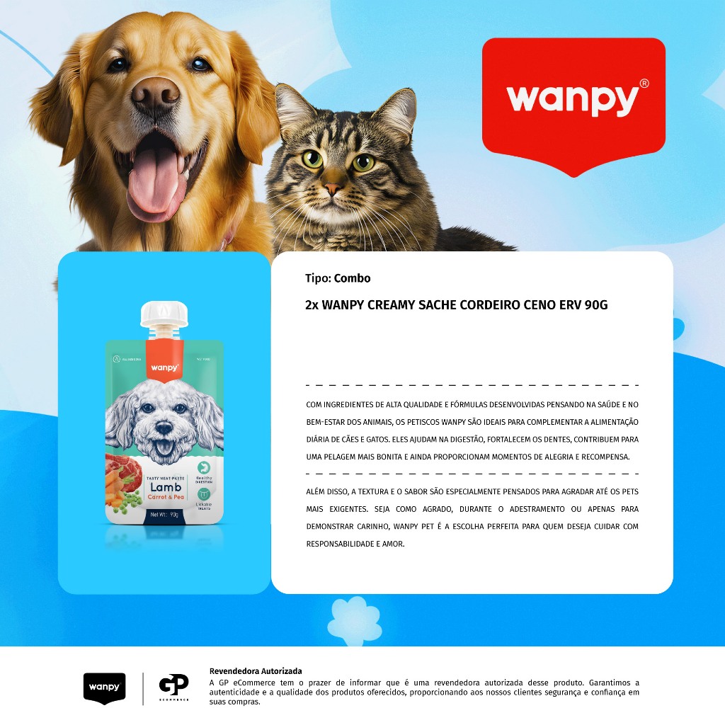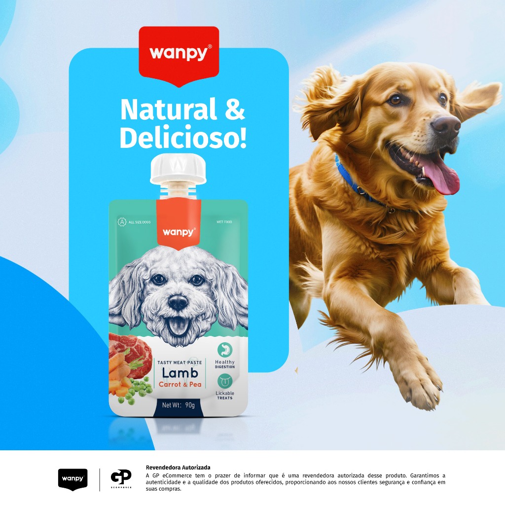 Kit 2 Truly Wanpy Petisco Creamy Sachê para Cães Sabor Cordeiro, Cenoura e Ervilha 90g