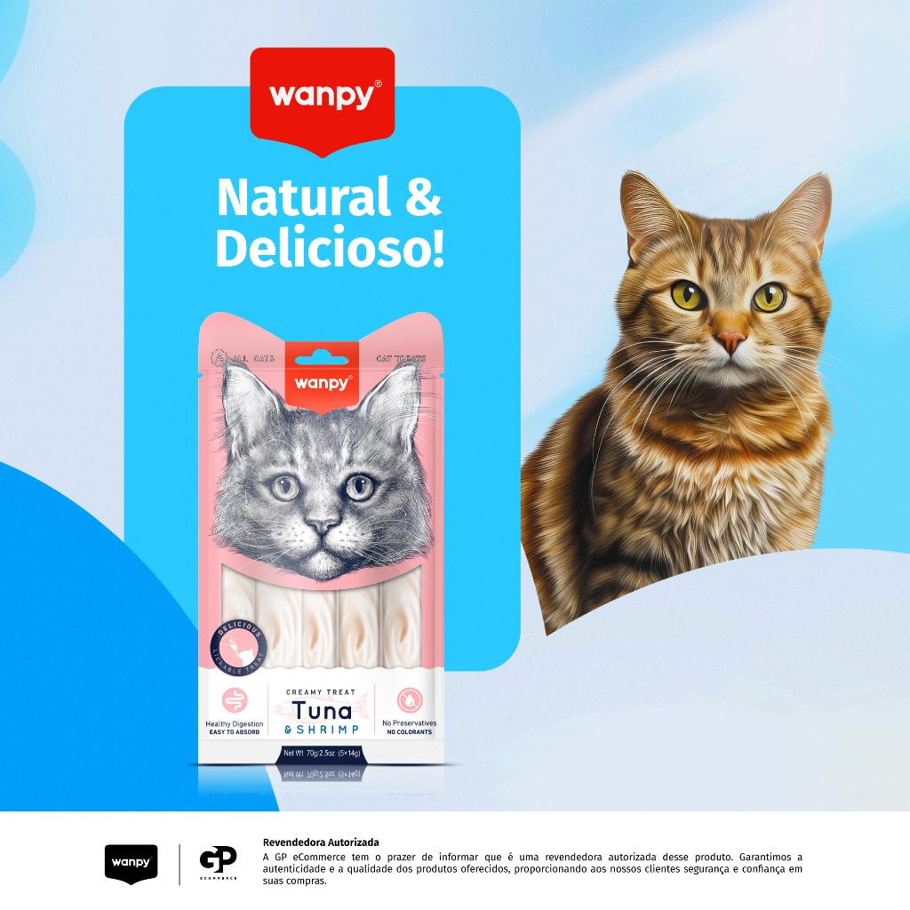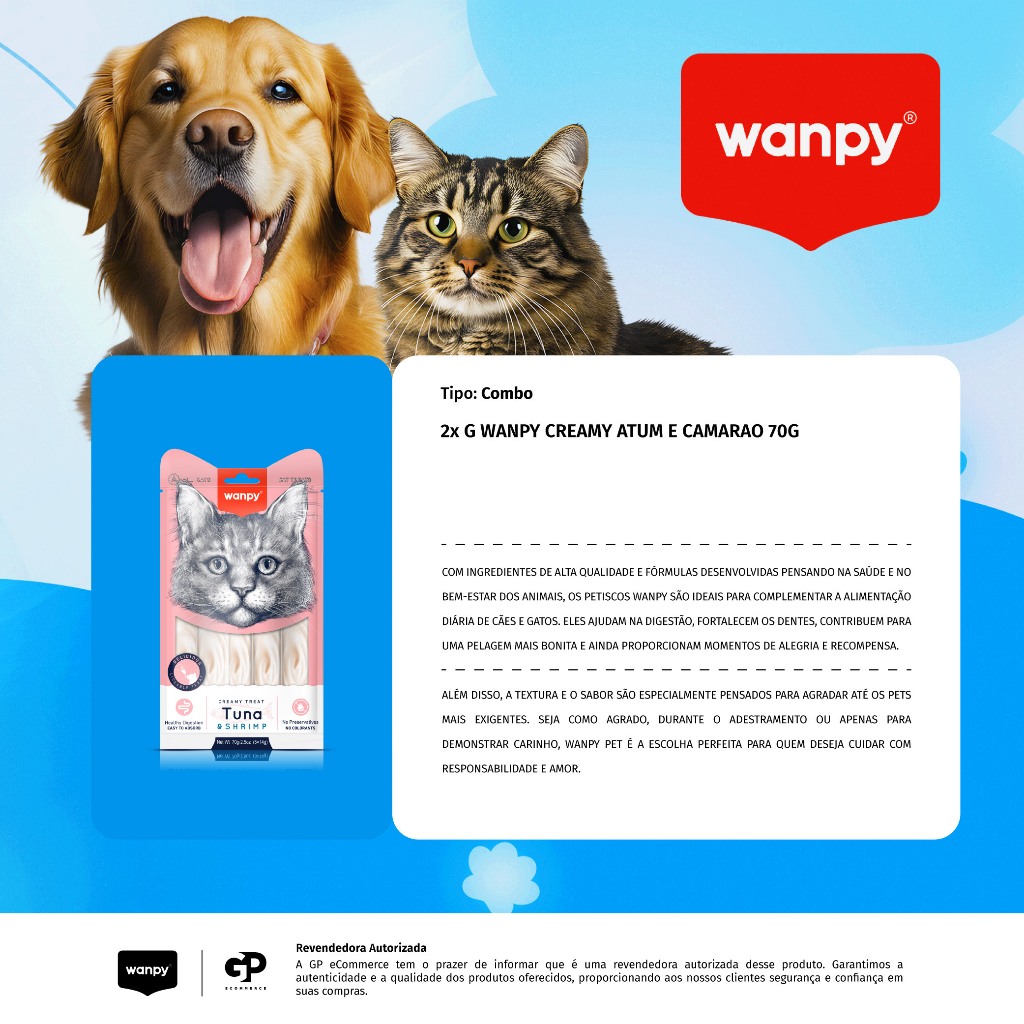 Kit 2 Truly Wanpy Petisco Creamy para Gatos Sabor Atum e Camarão 70g