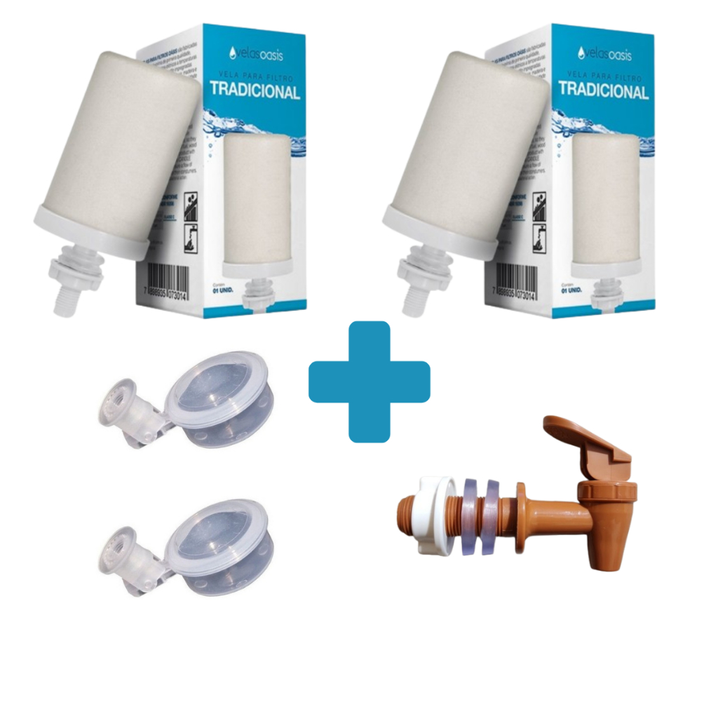 Kit 2 Velas Para Filtro de Barro Tradicional + 2 Boias Dosadoras + 1 Torneira Toque Marrom