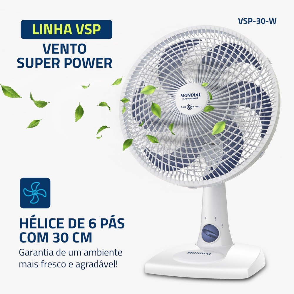 Kit 2 Ventiladores de mesa 30 cm 6 pás 3 velocidades Super Power VSP-30-W Mondial