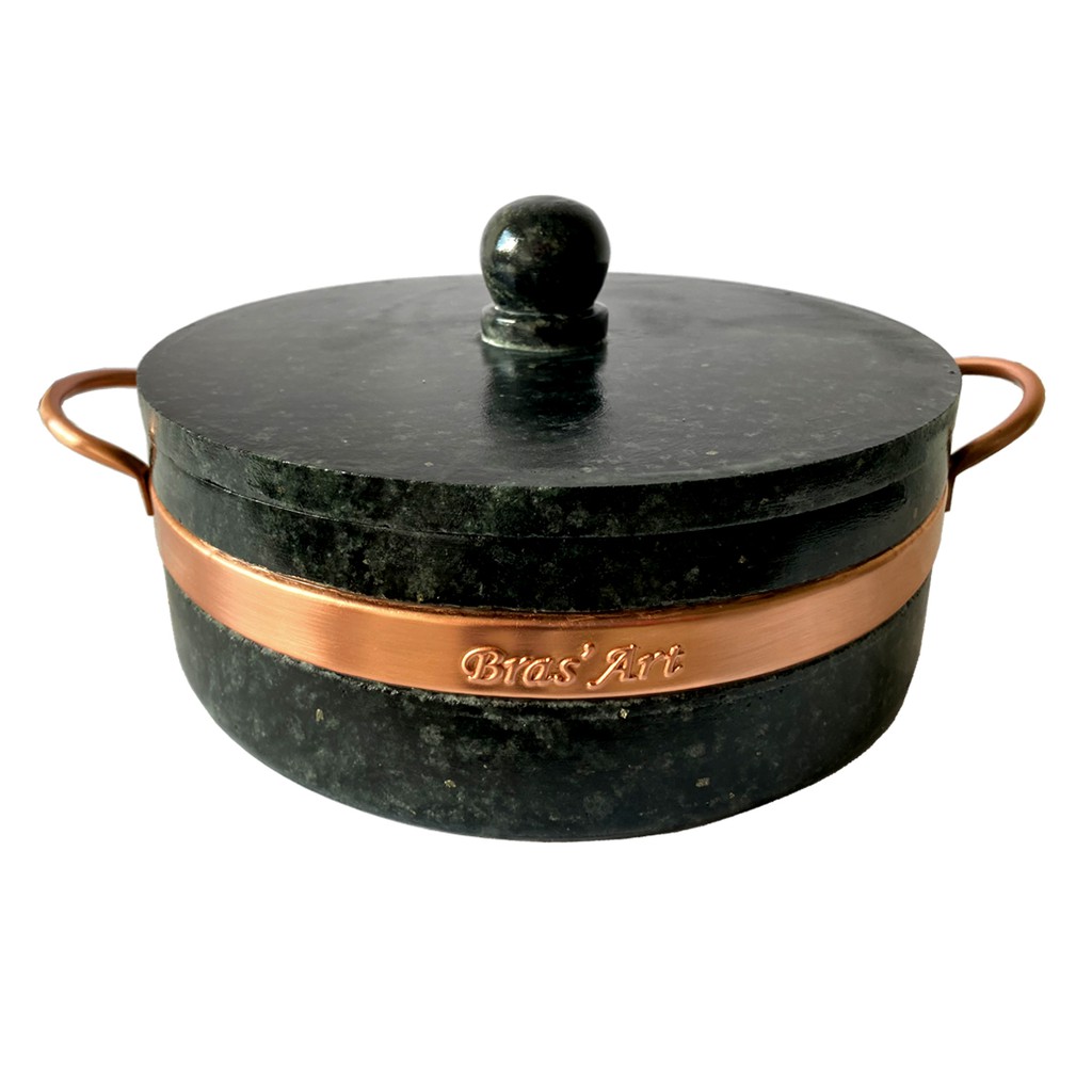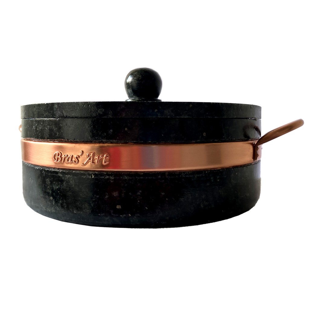 Kit 2 panelas de 2 litros de pedra sabão e 1 forma 37 centímetros de pedra sabão para pizza