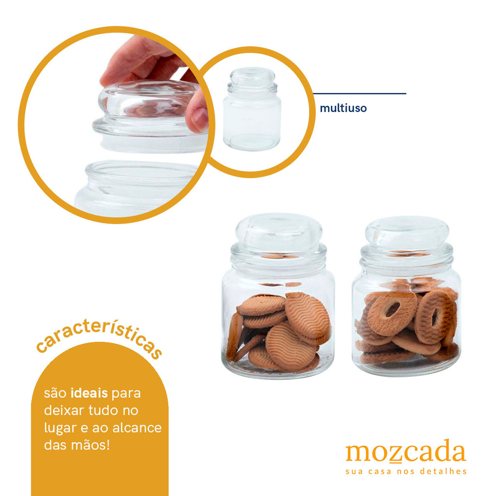 Kit 2 potes de vidro com tampa herméticos redondos 500ml - Mozcada