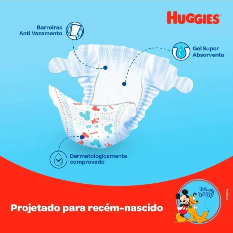 Kit 2 ptes Fralda Huggies P 38un 3,5 a 6 kg cada - Total 76un