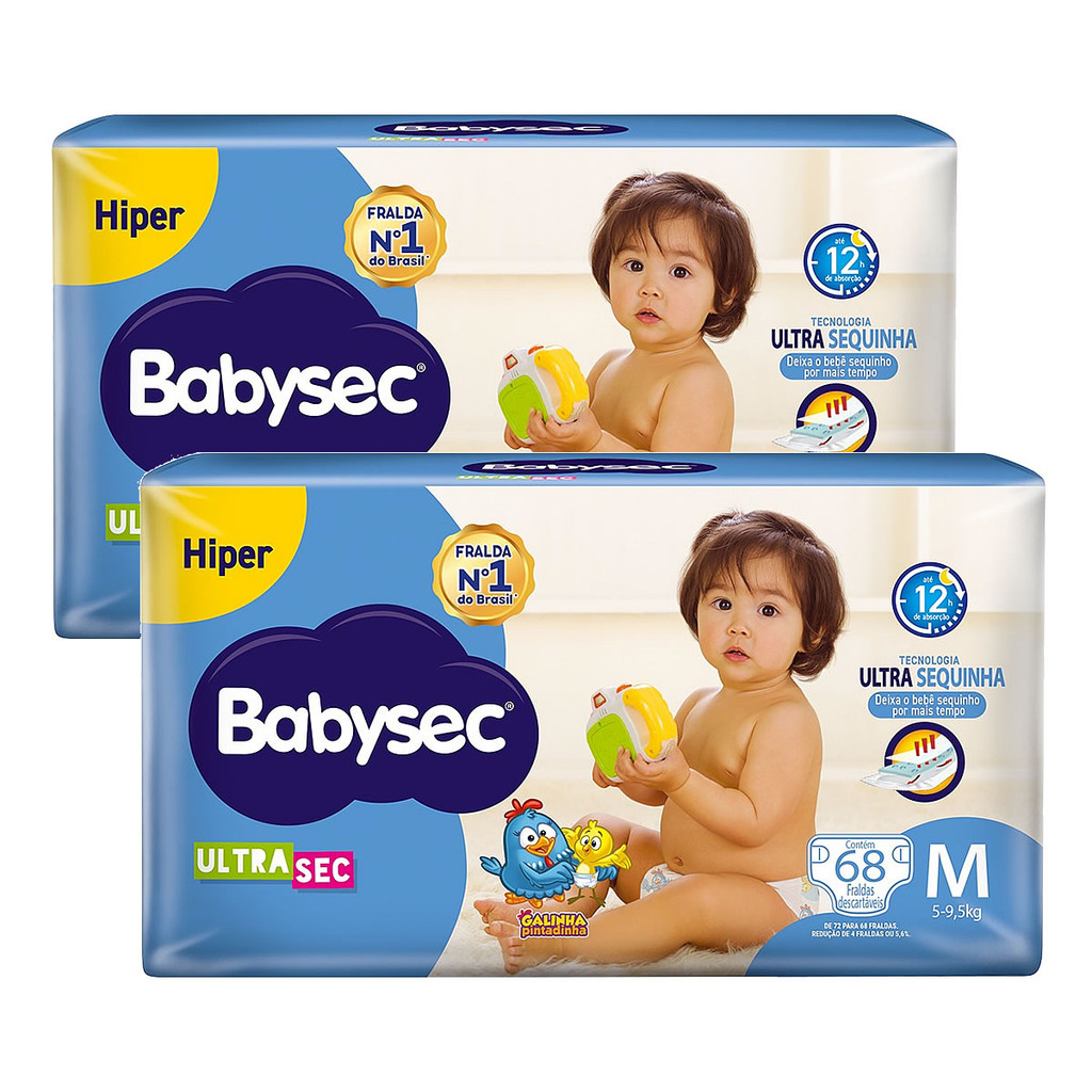 Kit 2 und Fralda Inf Babysec Ultra Hiper Tamanho M 68 und
