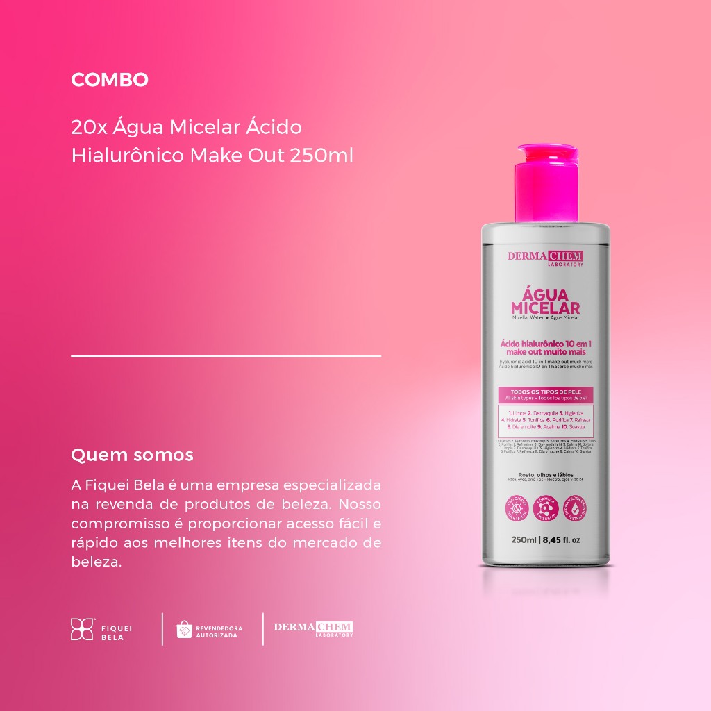 Kit 20 Água Micelar Ácido Hialurônico Make Out 250ml Dermachem