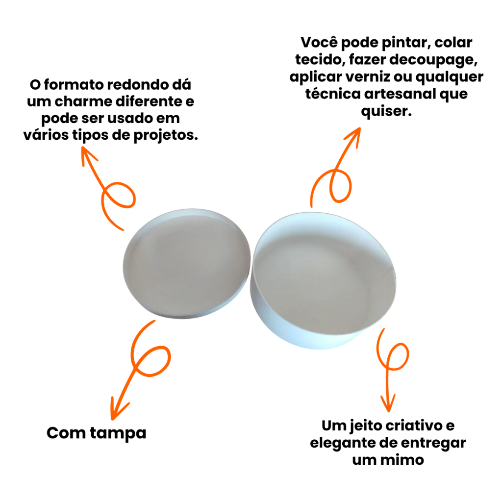 Kit 20 Caixas Redondas Pintadas em Mdf Multiuso Decorativa 25x10 Convite Padrinhos Presentes Branca