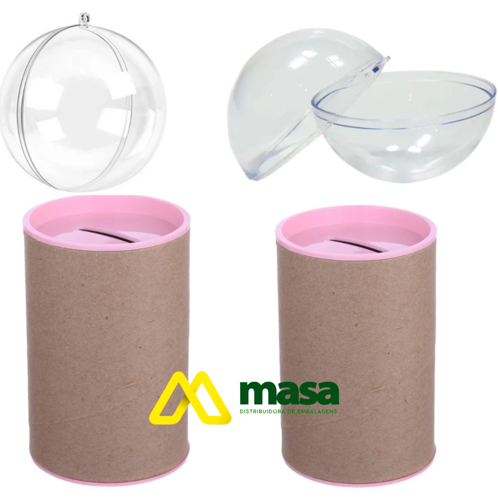 Kit 20 Cofrinho 10x6 e 20 Esfera Bola Acrilica 6,5cm- cofre para lembrancinha Festa Luxo Cofre Duplo