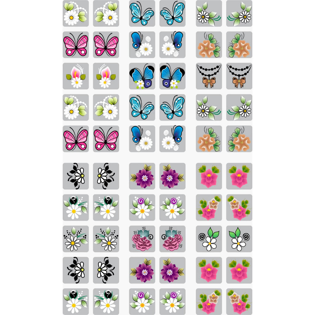 Kit 200 Adesivos de Unha 3D Pré-Prontos – Películas Decorativas Meio Cartelão Com Desenhos Variados Para Nail Art - WL