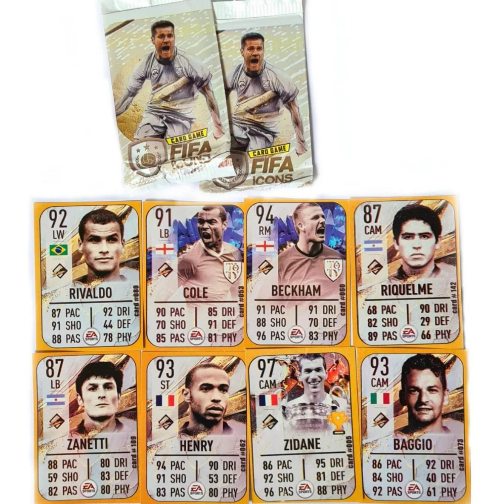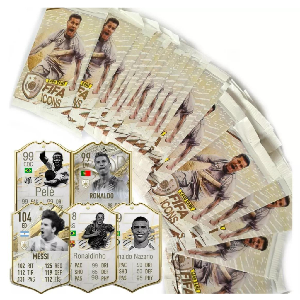 Kit 200 Cards Figurinhas FIFA ICONS 50 Pacotinhos Jogadores Lendas Do Futebol Cartas de Bater Bafô