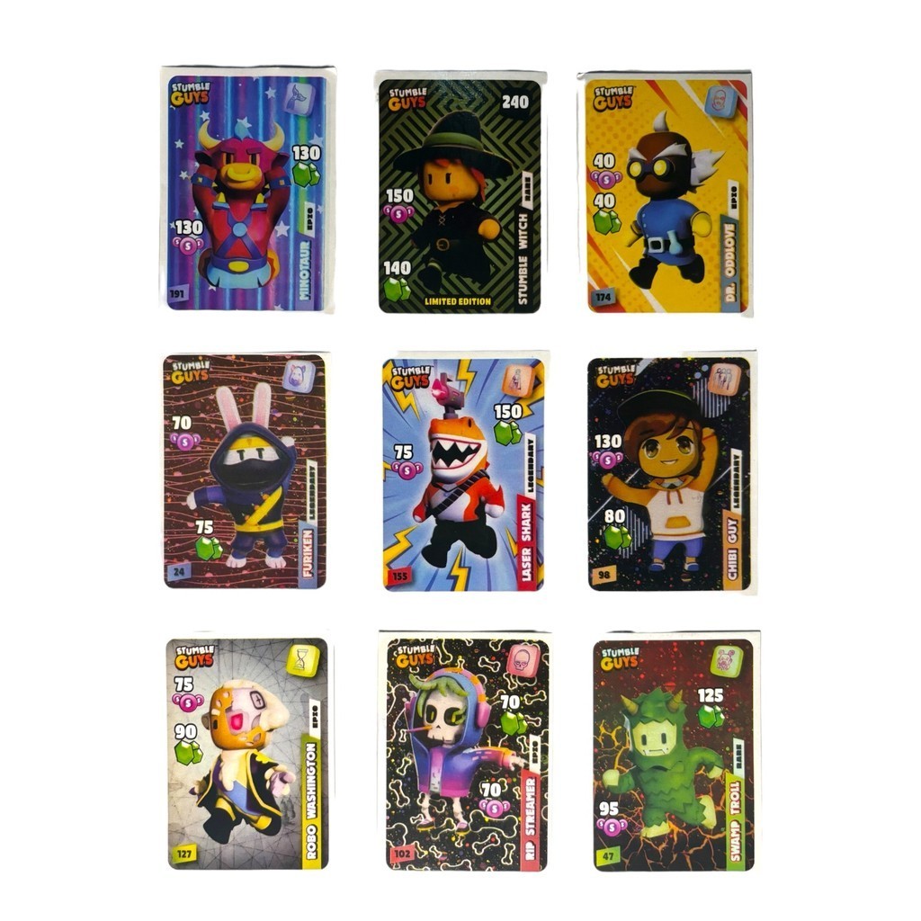 Kit 200 Cards Stumble Guys 50 Pacotinhos Fechados Jogo De Aventura Bater Bafô Trocar Figurinhas
