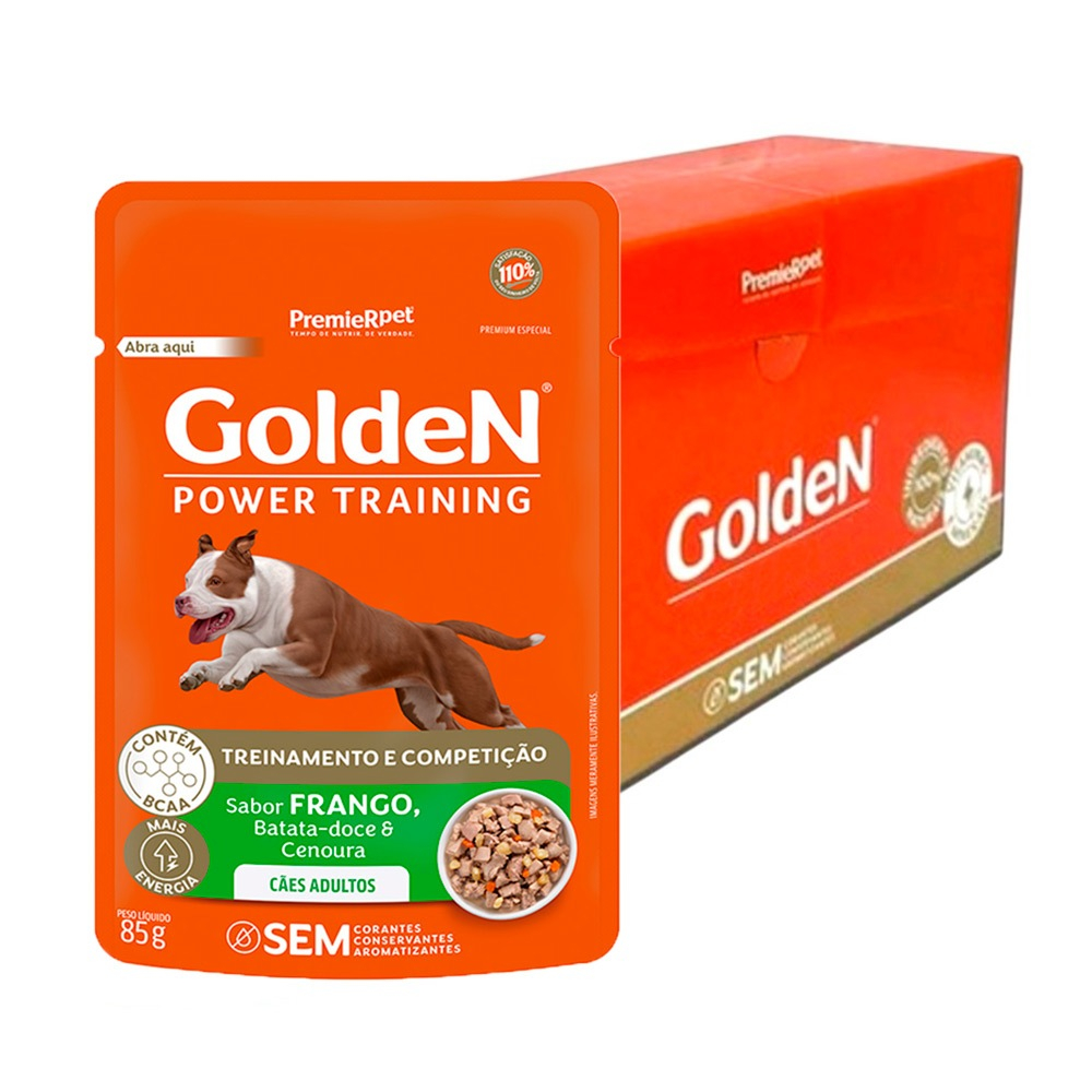 Kit 20un Ração Úmida Golden Power Training Cães Adultos Frango, Batata Doce e Cenoura 85g