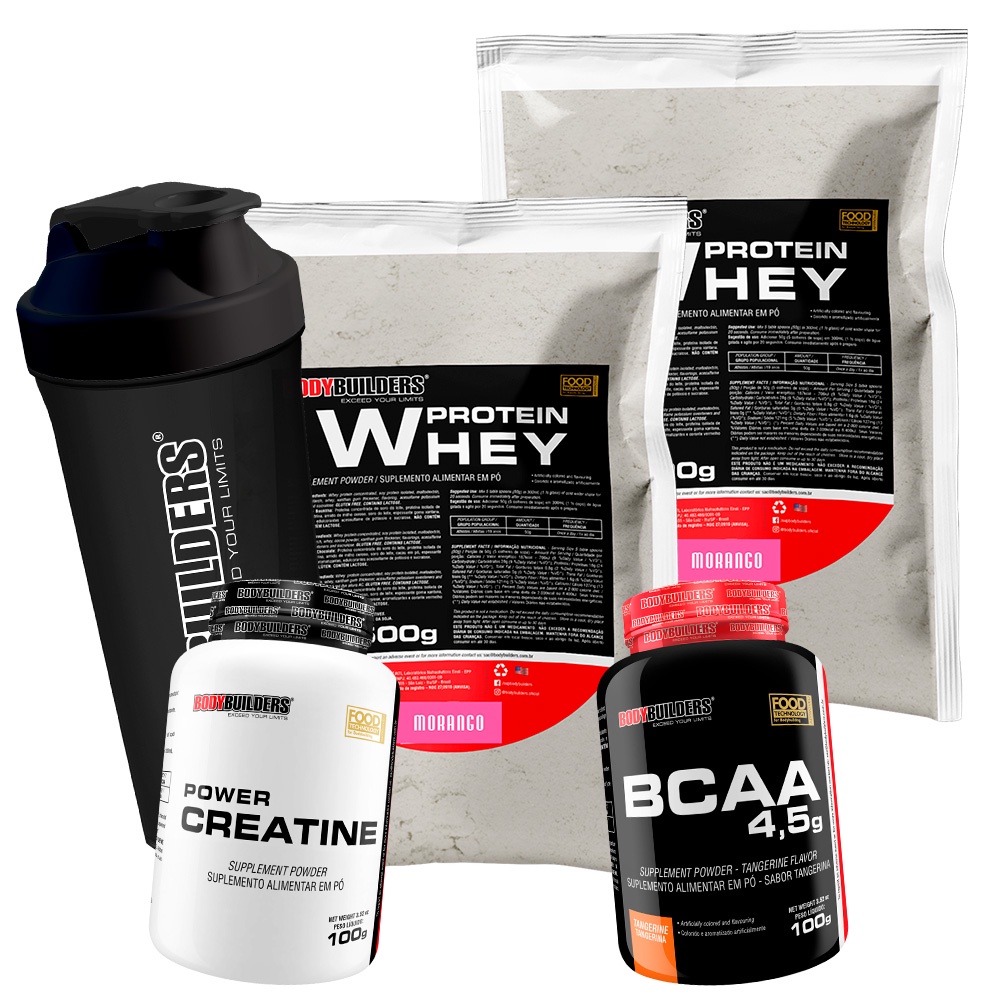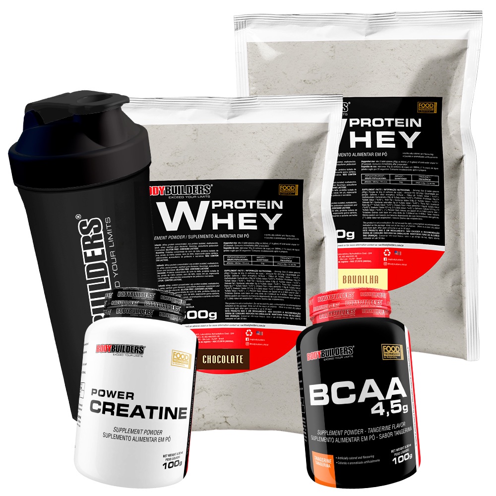 Kit 2x Whey Protein 500g + BCAA 4,5 100g + Power Creatina 100g + Coqueteleira - Bodybuilders