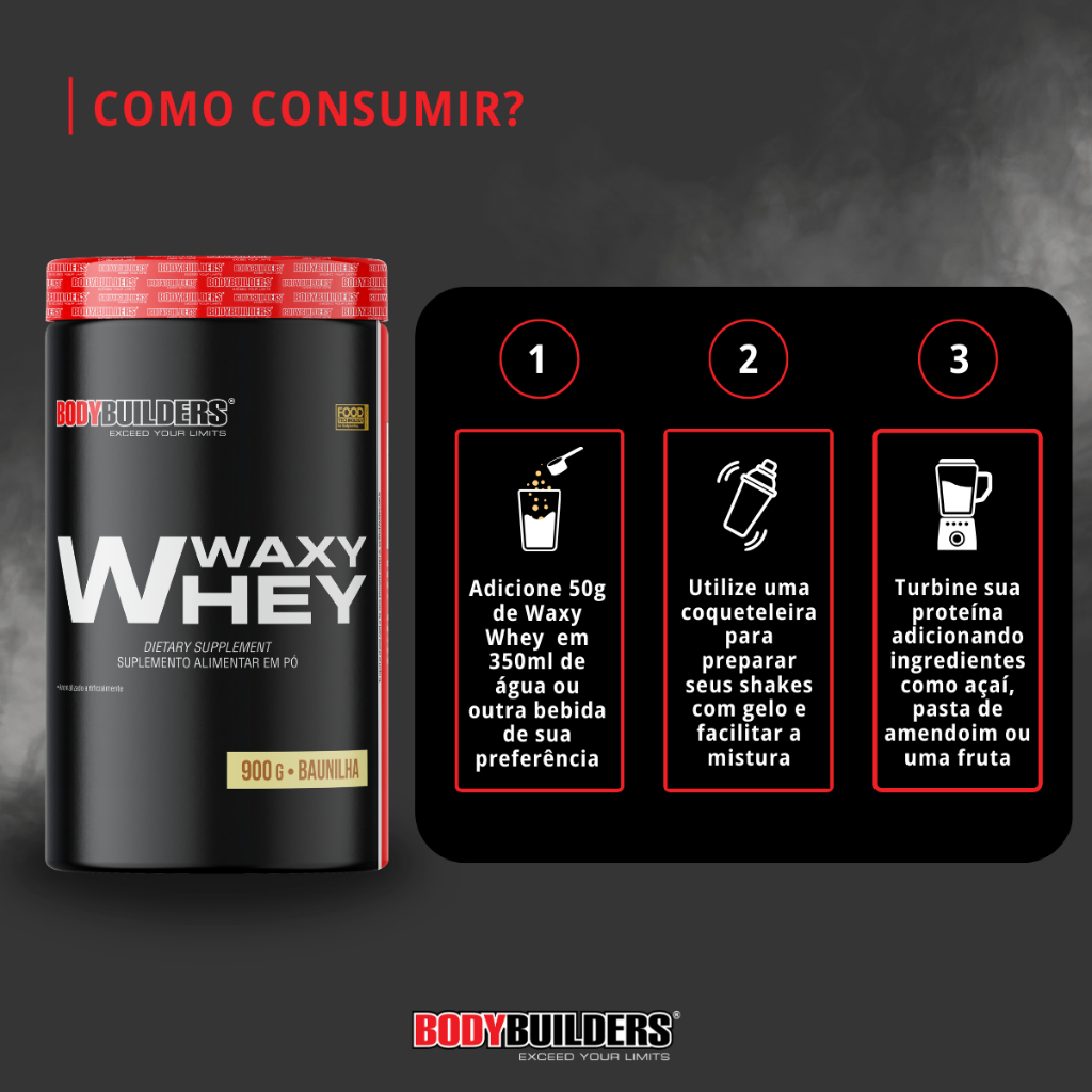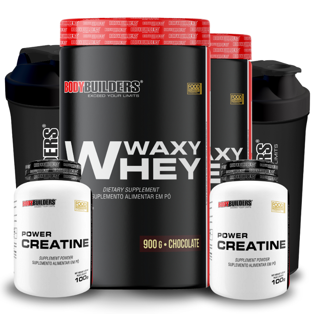 Kit 2x Whey Protein Waxy Whey 900g + 2x Creatina Power 100g + 2x Coqueteleira - Bodybuilders