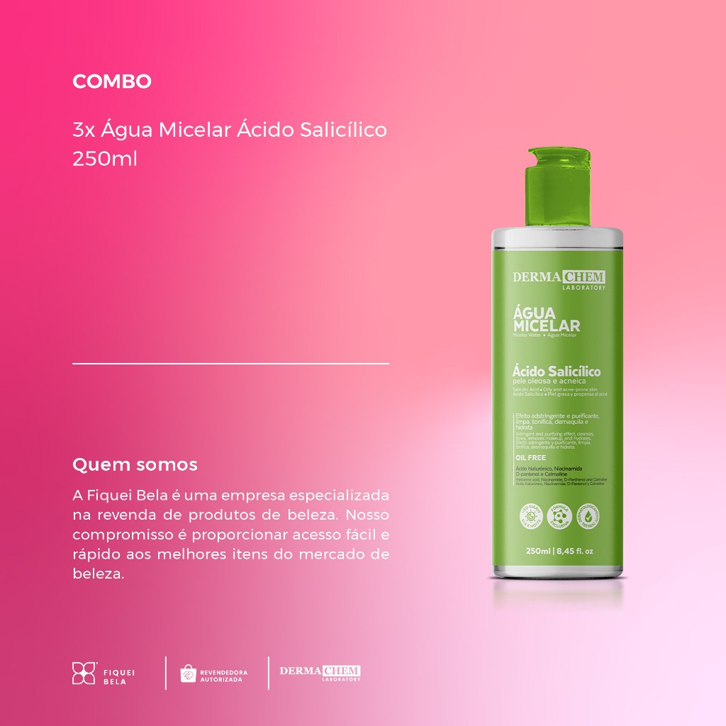 Kit 3 Água Micelar Ácido Salicílico Pele Oleosa 250ml Dermachem