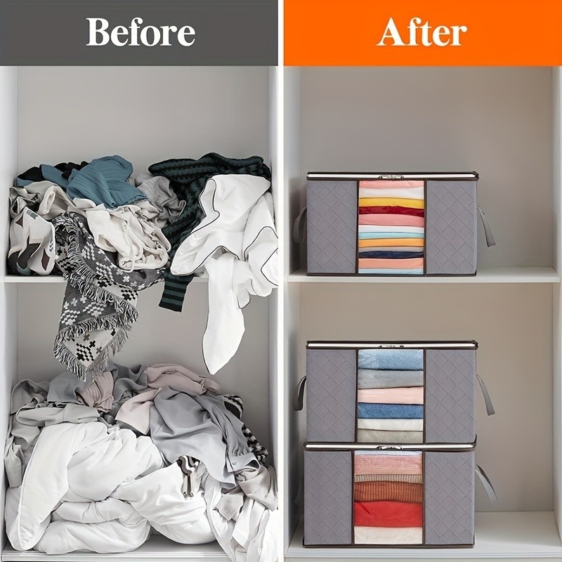 Kit 3/6 Pecas Caixas Organizadoras de Roupas Calçados Cobertas TNT Com Tampa Ecológico Anti-Poeira Multiuso