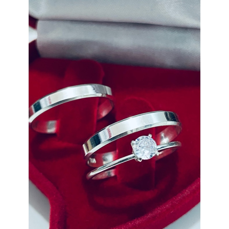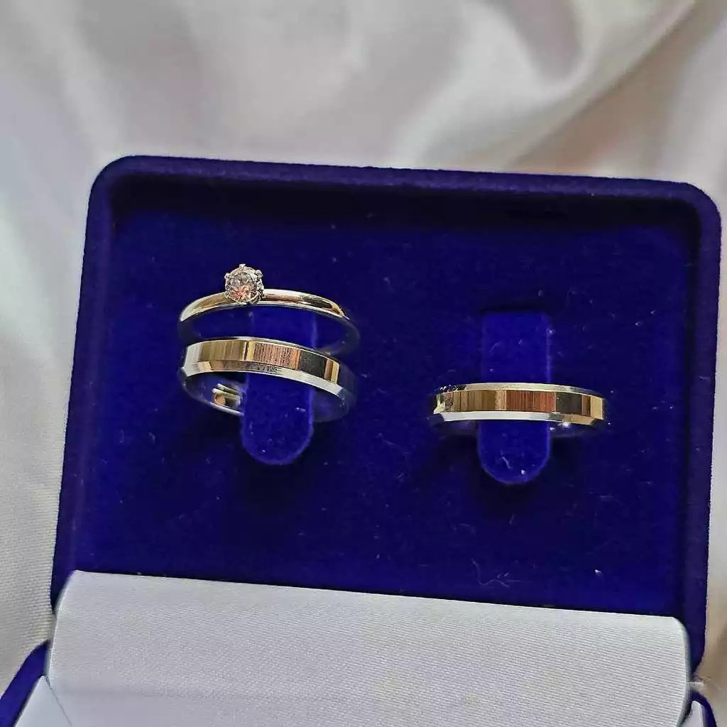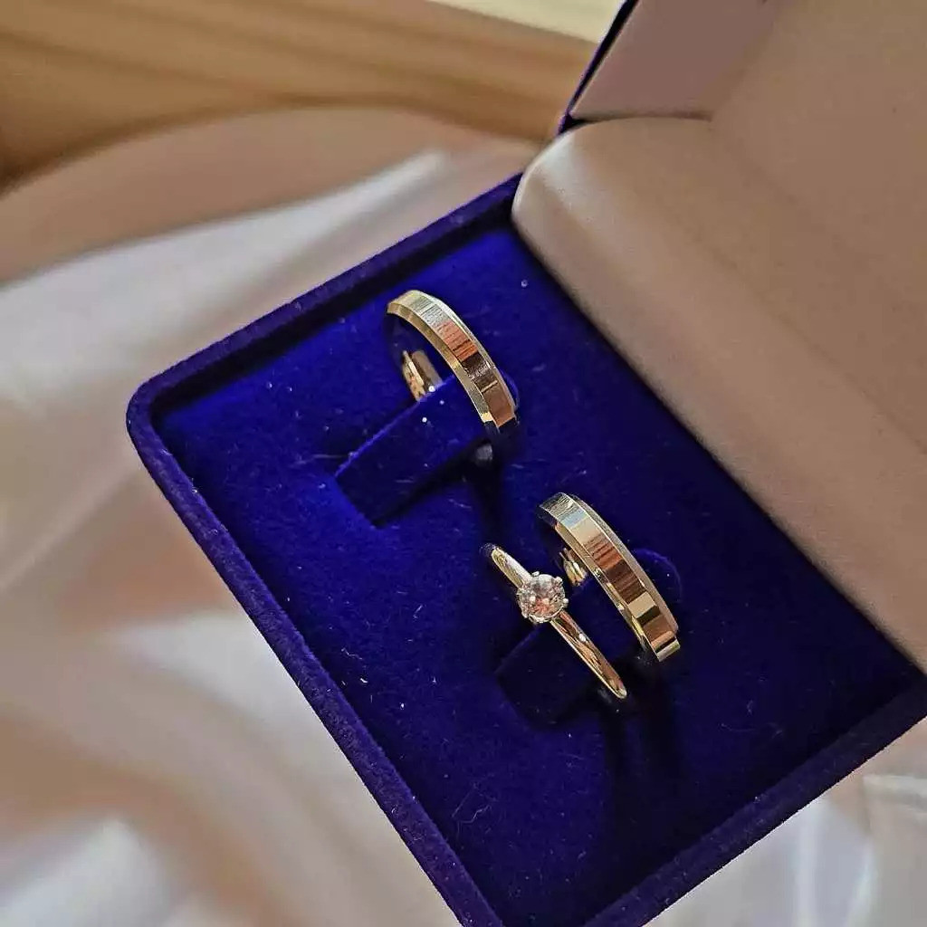Kit 3 Anéis - Alianças Joia Prata 925 Anel de Compromisso + Anel Solitário Feminino – Kit Casal Namoro Noivado Casamento