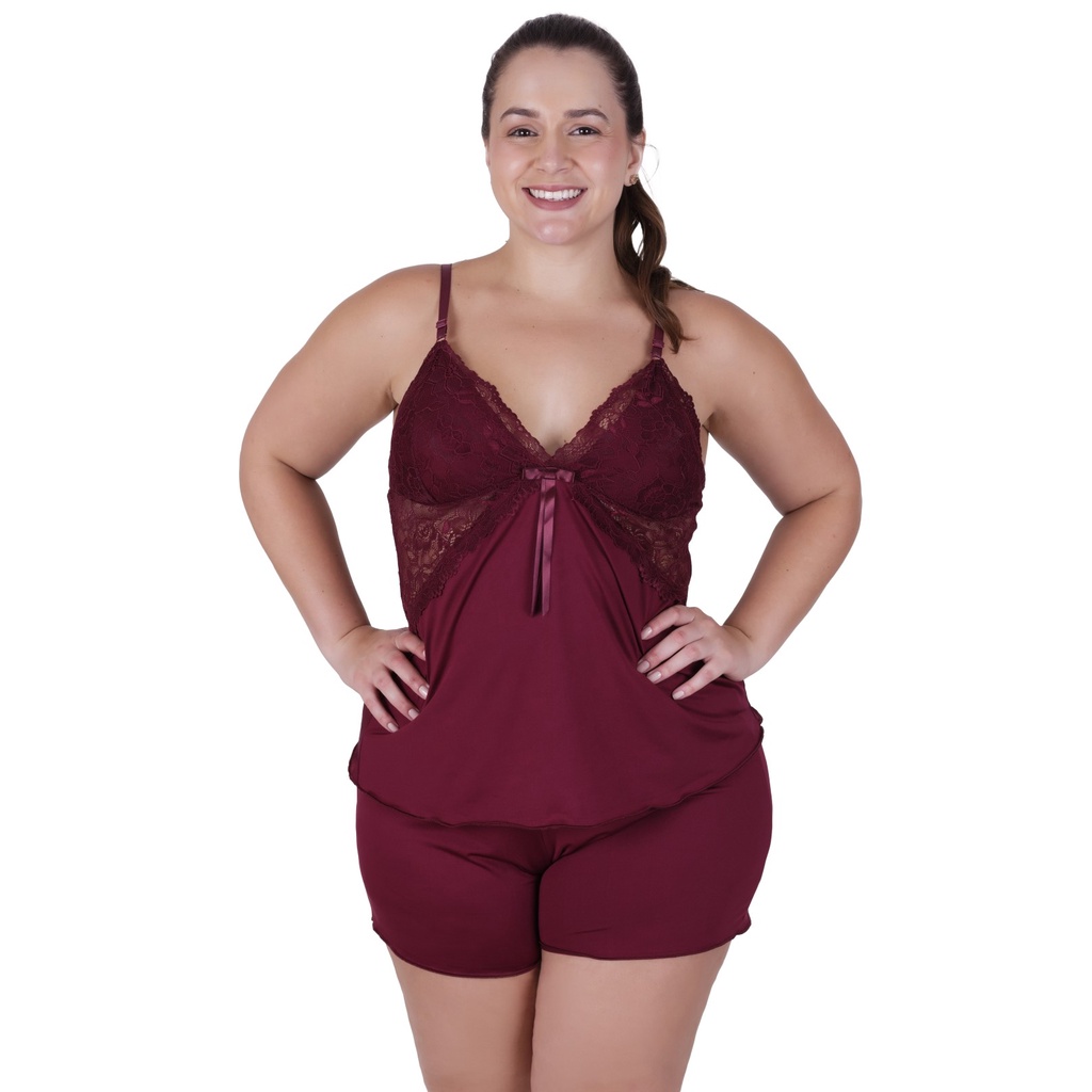 Kit 3 Baby Doll Plus Size Feminino Blusa e Short de Dormir Simone