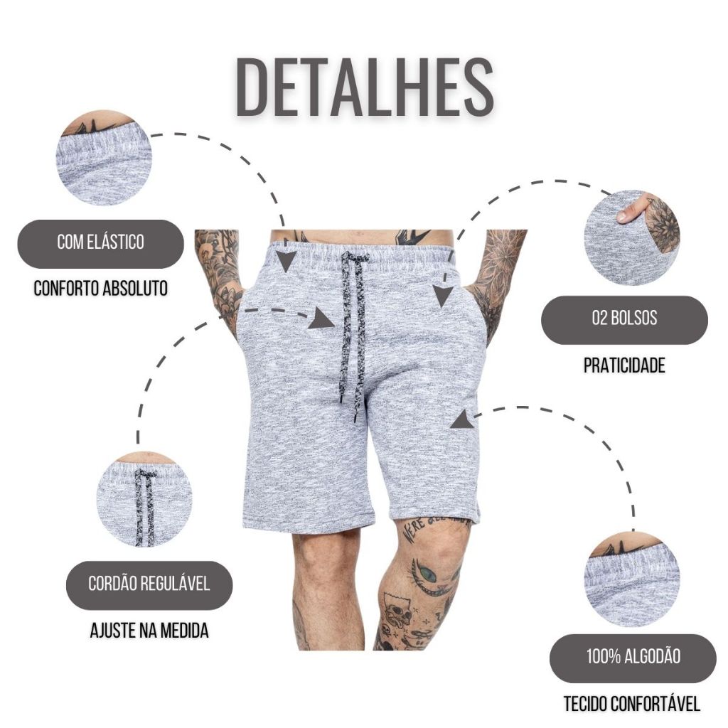 Kit 3 Bermuda Moletom Masculina Básica Casual Verão Confortável