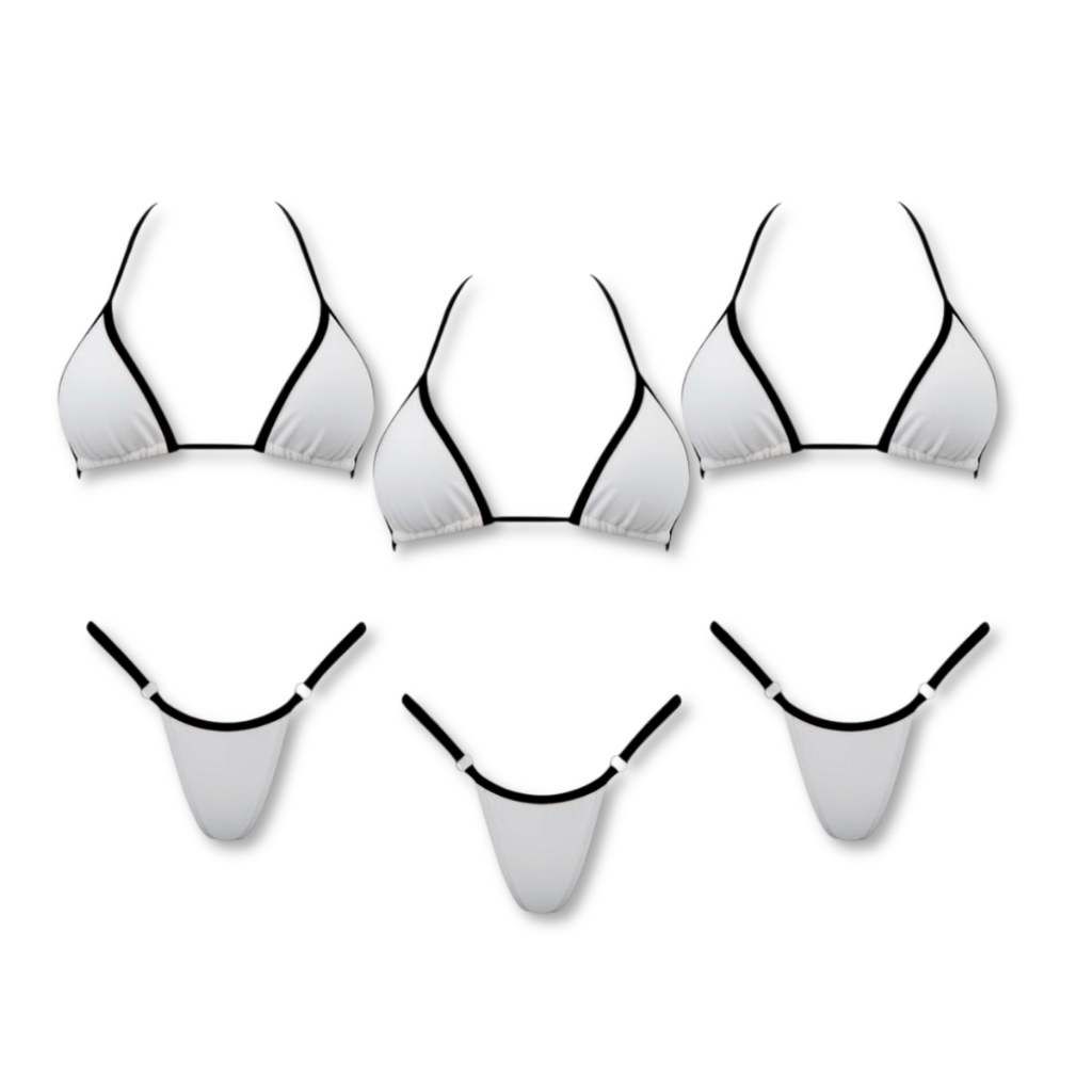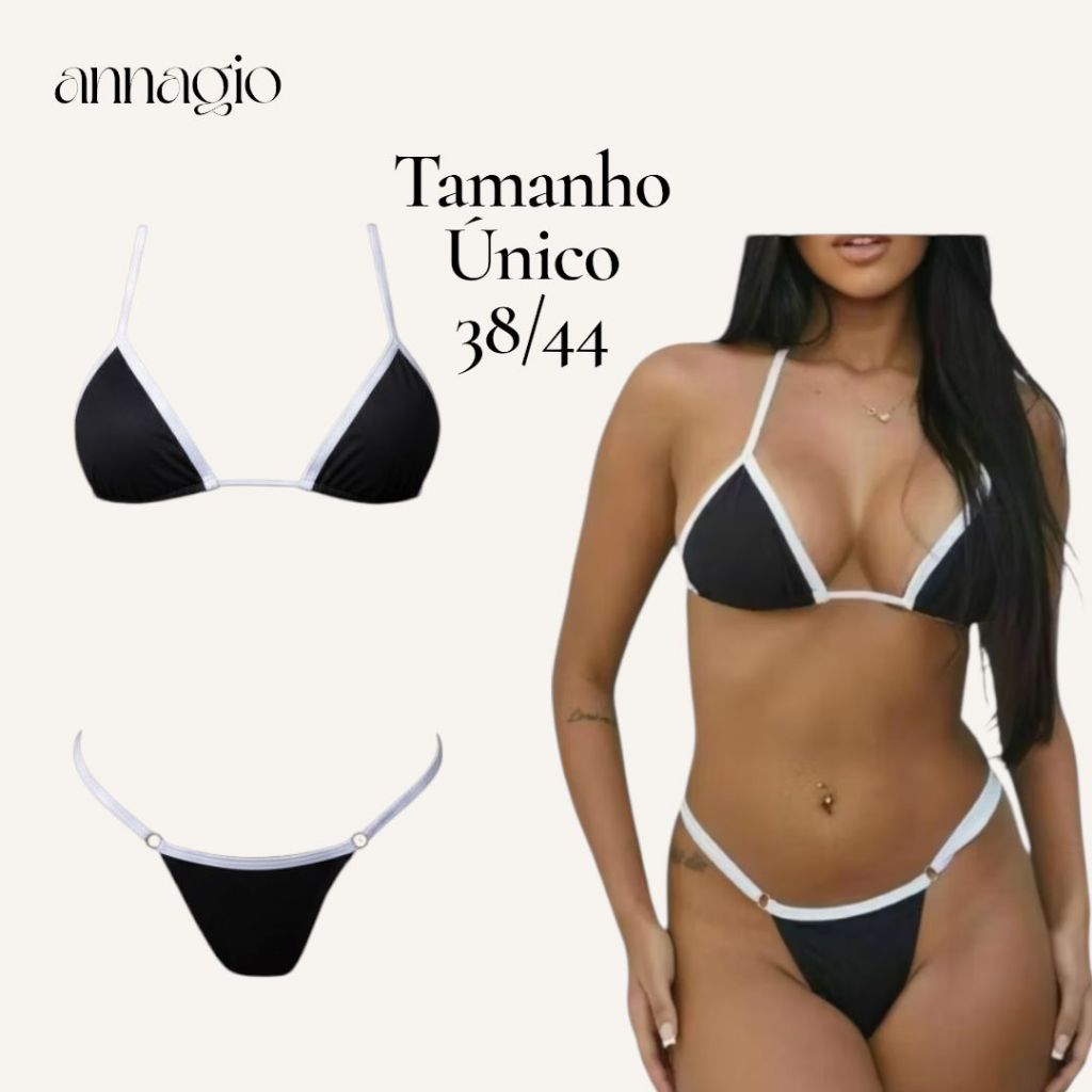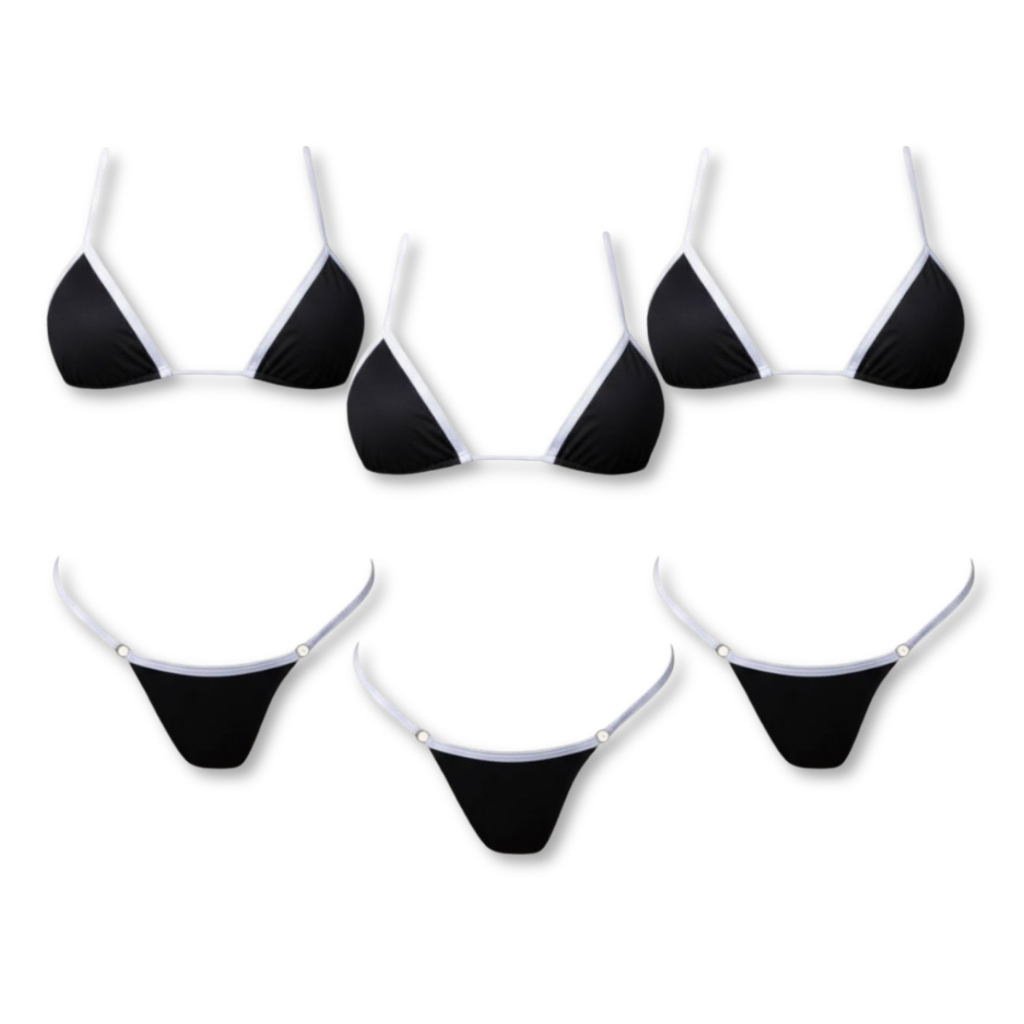 Kit 3 Biquini Bicolor Feminino Premium Forrado Regulagem Biquíni Fio Dental Praia Preto Branco