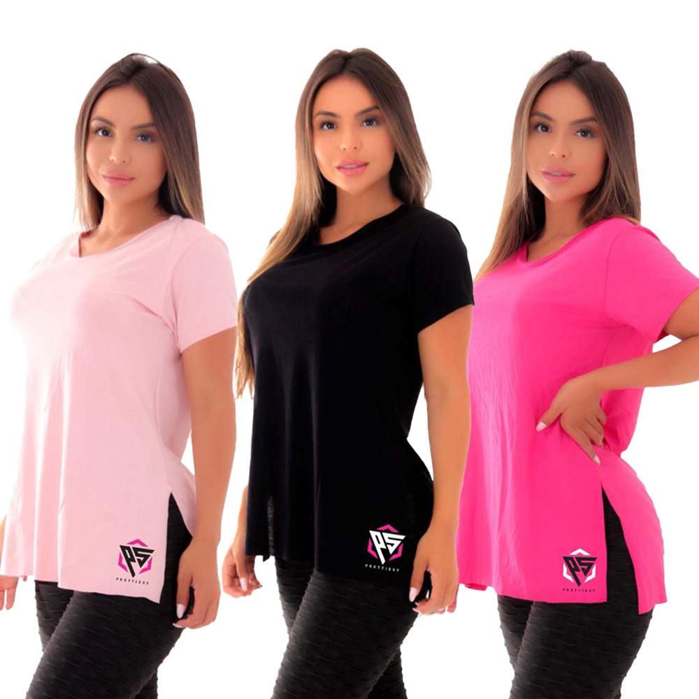 Kit 3 Blusas Academia Fitness Tapa Bumbum Ps Camiseta Feminina