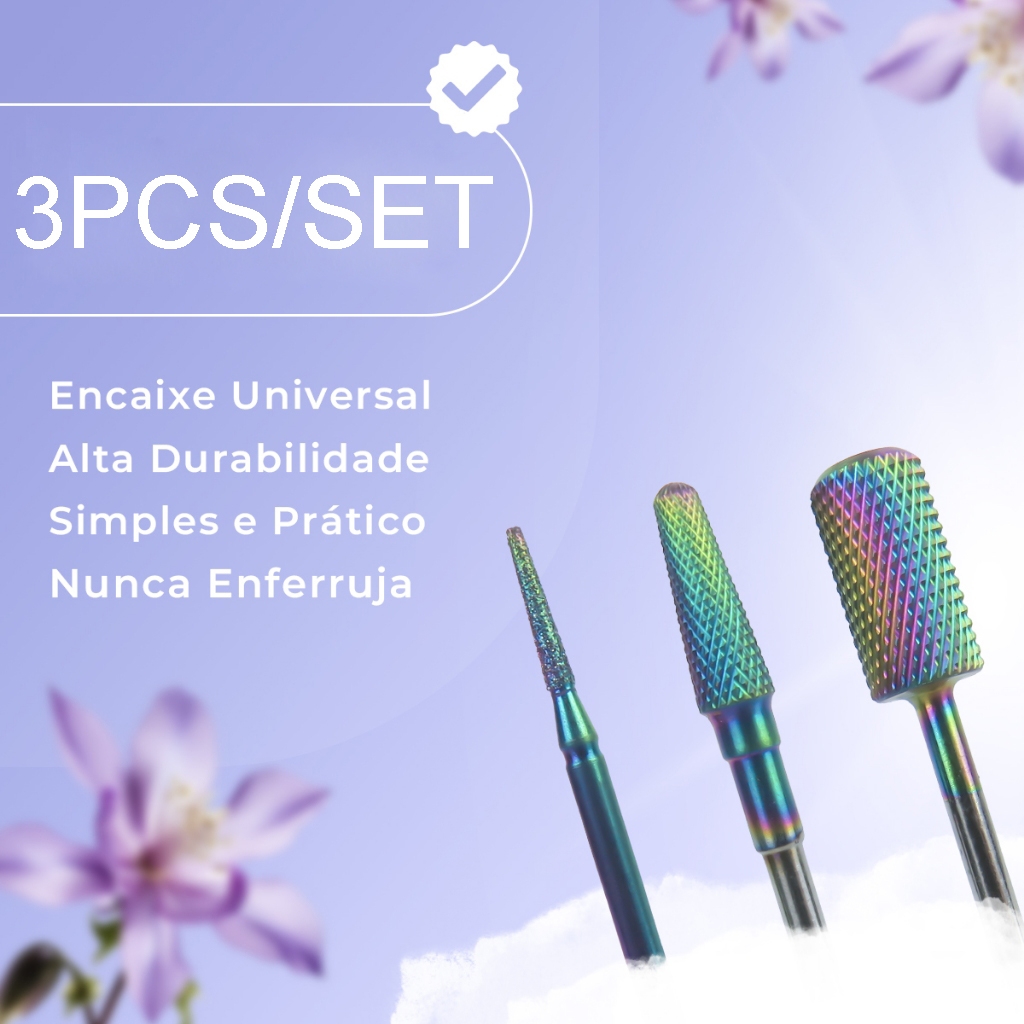 Kit 3 Brocas de Tungstênio Profissionais para Unhas de Gel e Unhas de Porcelana