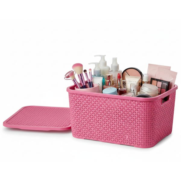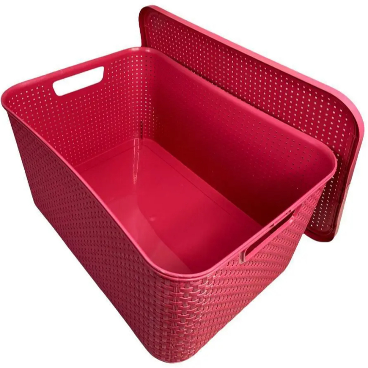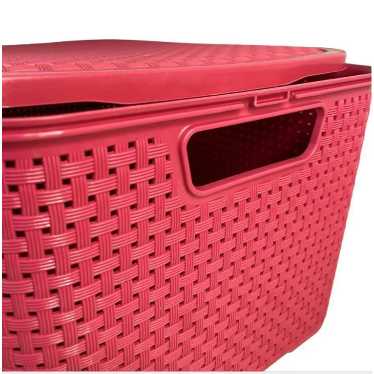 Kit 3 Caixas Organizadoras Rattan com Tampa Rosa 15 Litros - TOY 25594
