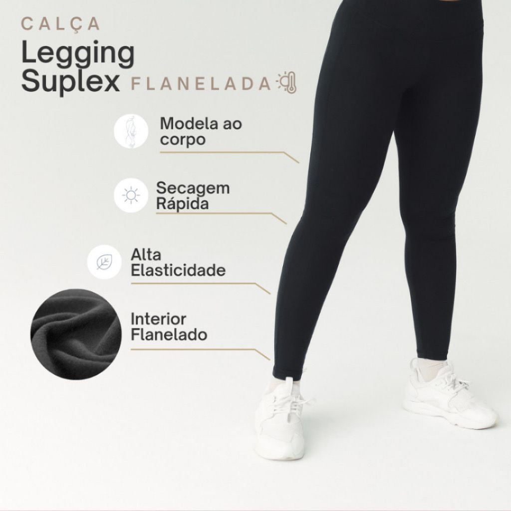 Kit 3 Calça Legging Feminina Flanelada Térmica Cintura Alta com Elástico Zero Transparencia
