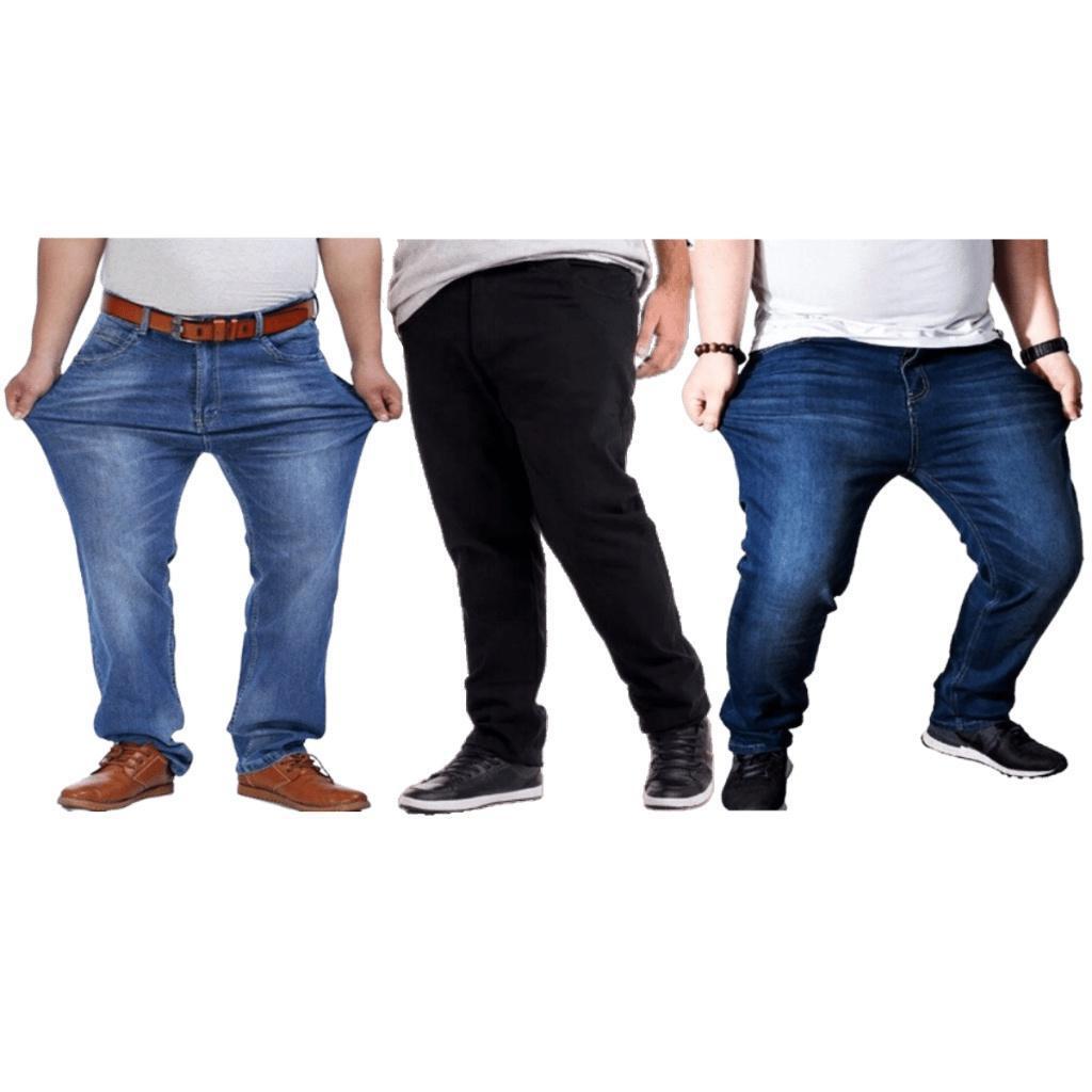 Kit 3 Calça Masculino Zíper Lycra Jeans Stretch plus size tamanho 50 52 54 56 Fabricantes Preços Especiais Venda Direta