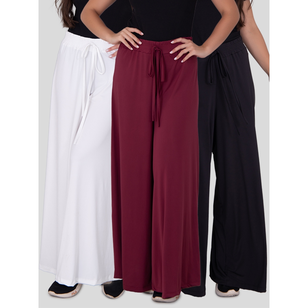 Kit 3 Calças Feminina Pantalona Cintura Alta Moda Feminina