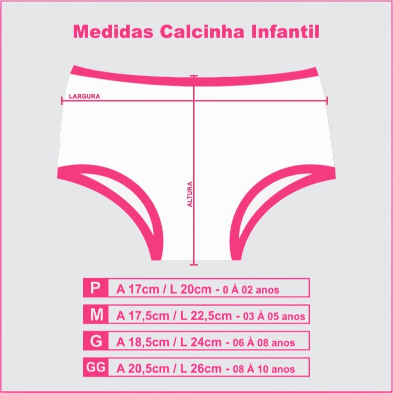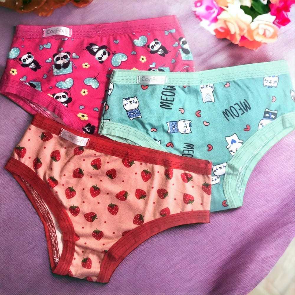 Kit 3 Calcinhas Conforto Infantil Estampada Lingerie Infanto Juvenil Calcinha Infantil