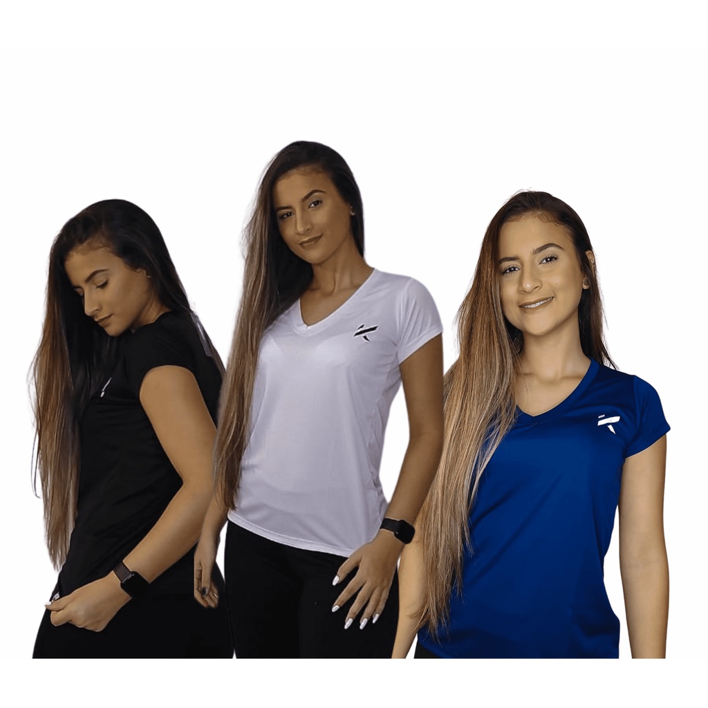 Kit 3 Camisas Femininas Esportivas Em Dry Fit