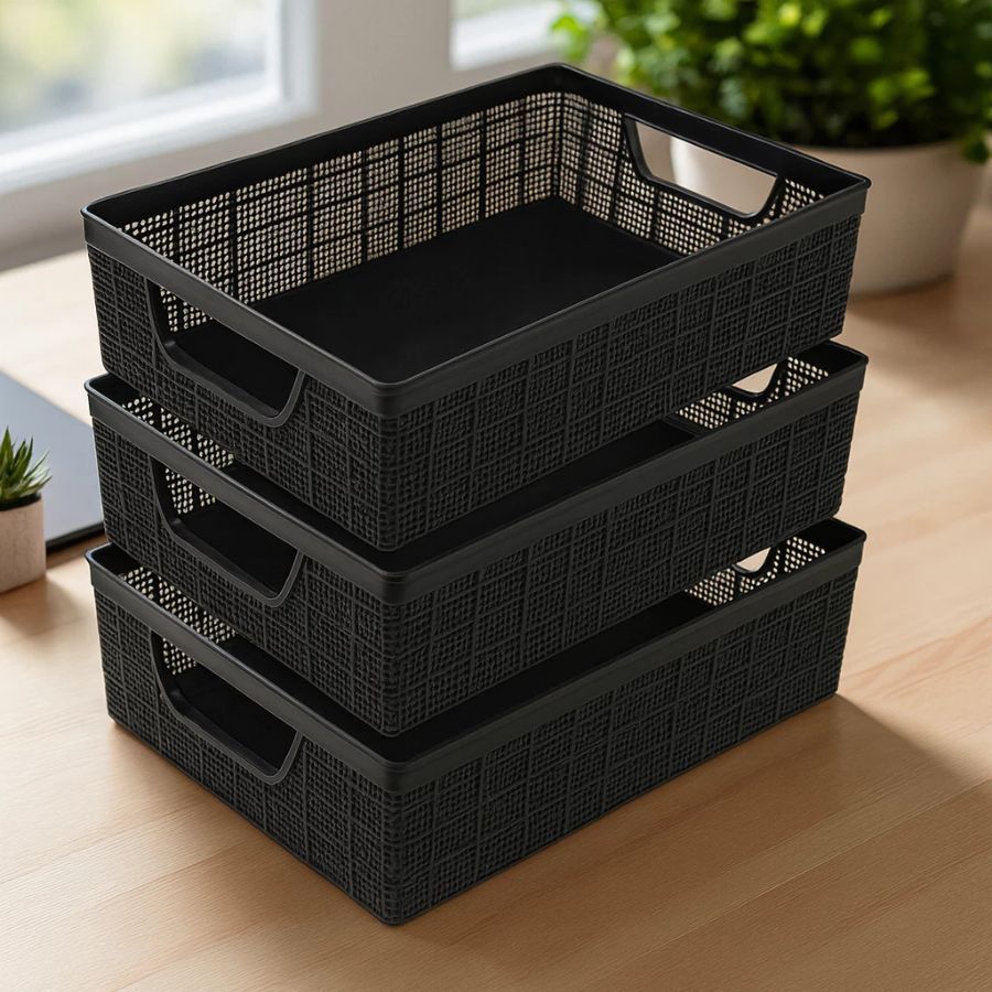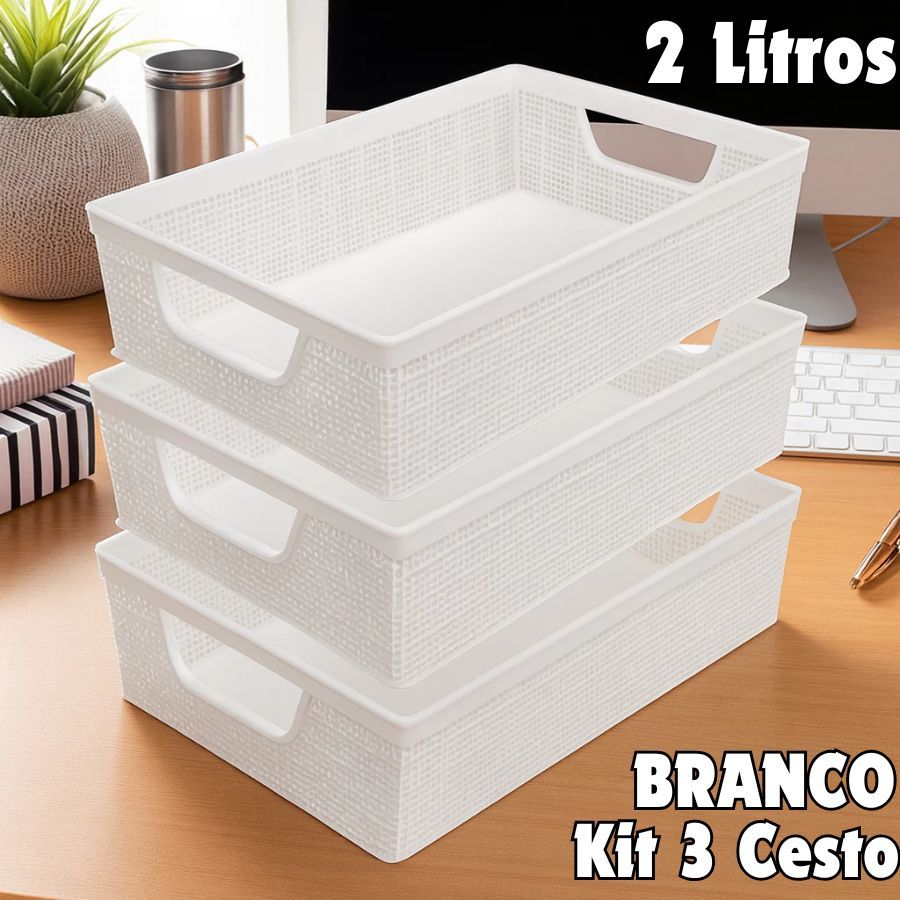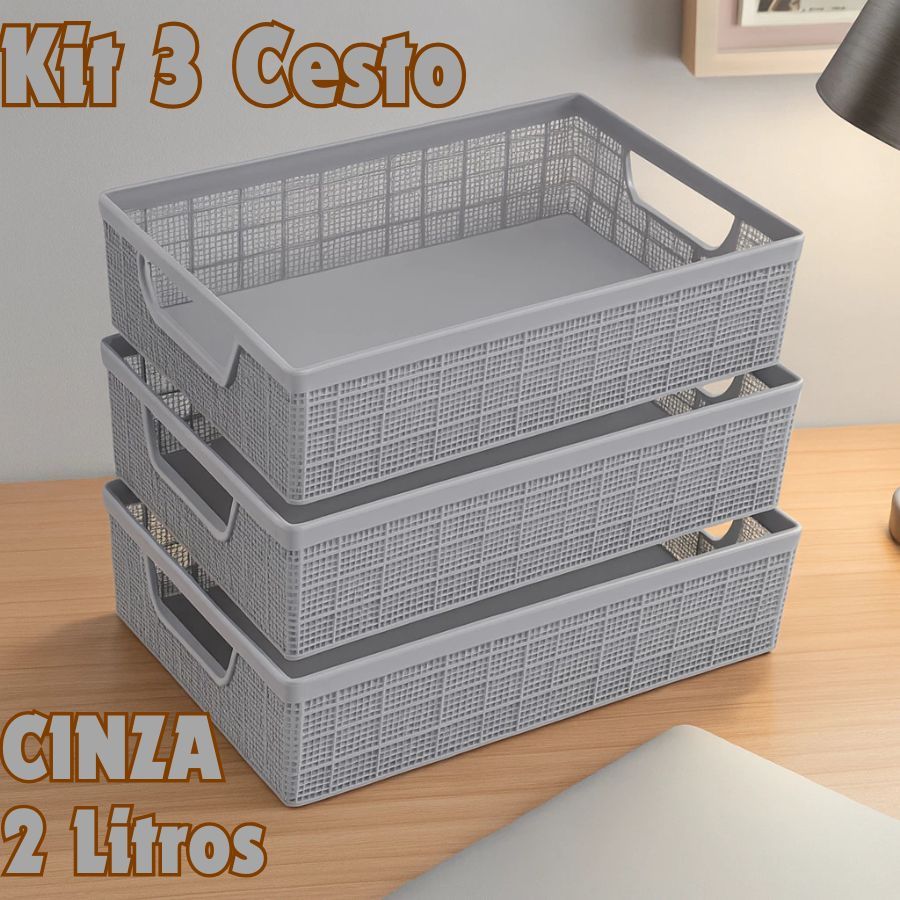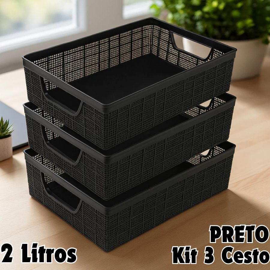 Kit 3 Cestos Jaguar Organizador 2 Litros Multiuso Empalhável De Plástico Para Cozinha Ou Banheiro