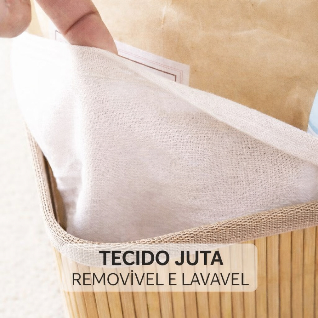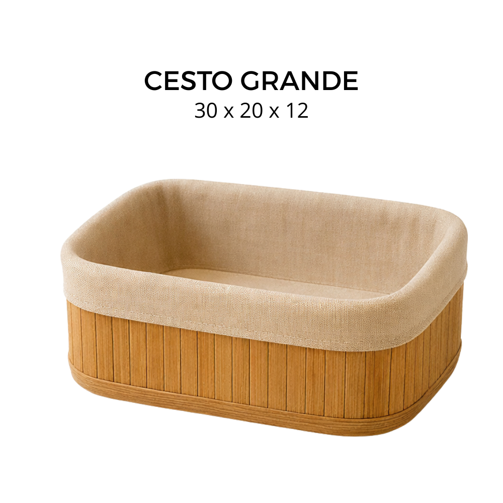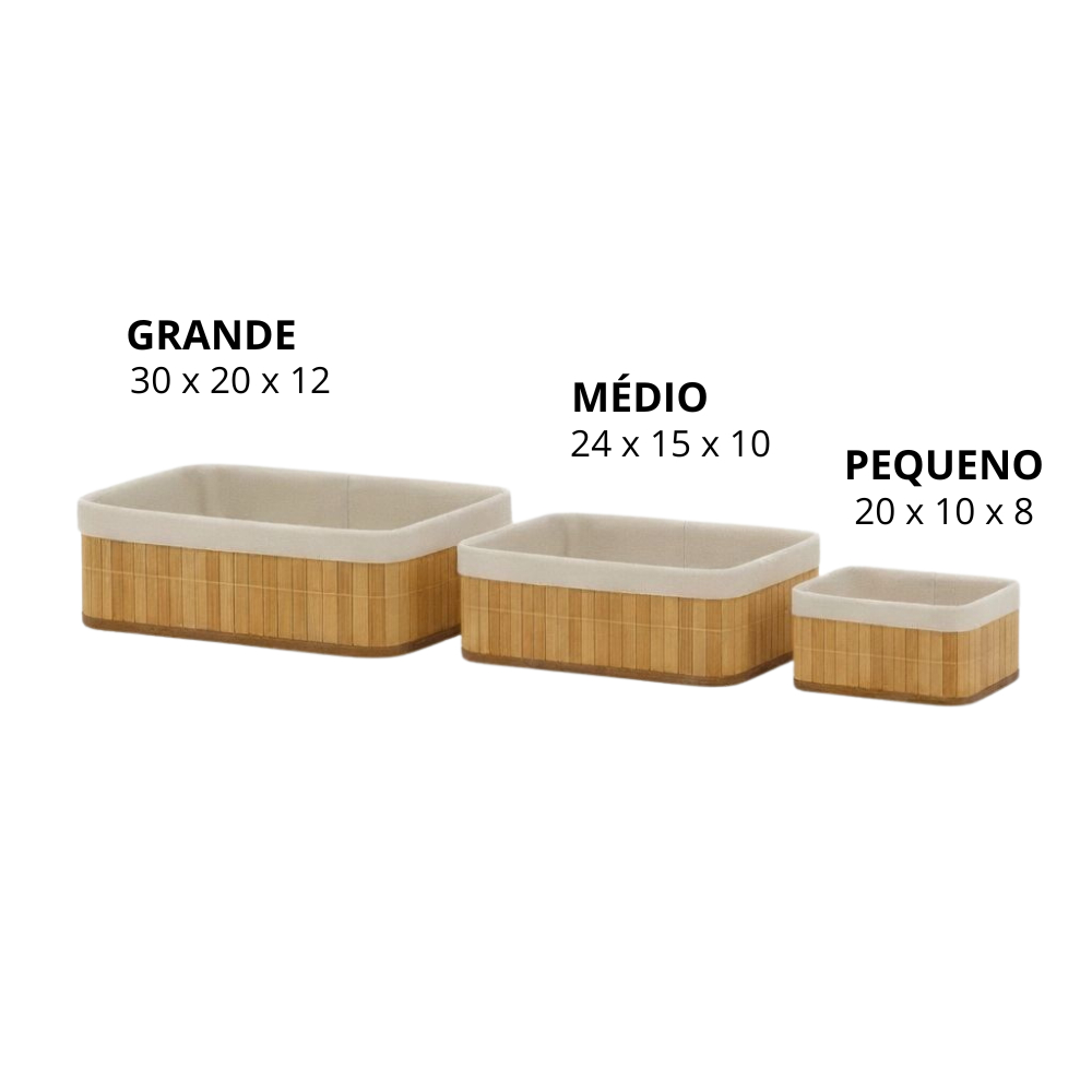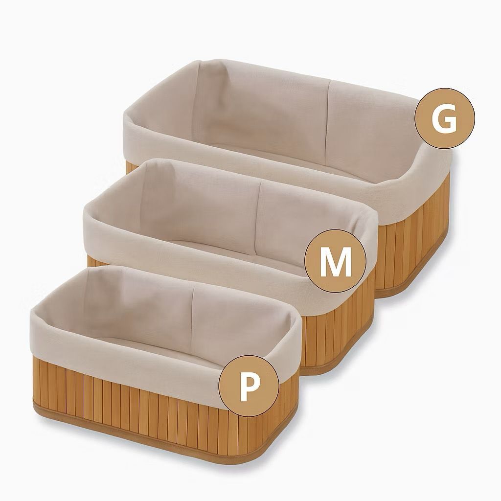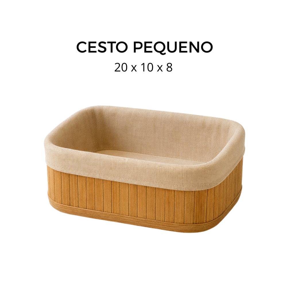 Cesto Organizador de Bambu Multiuso Forro Organizador Objetos Quarto Roupa Banheiro
