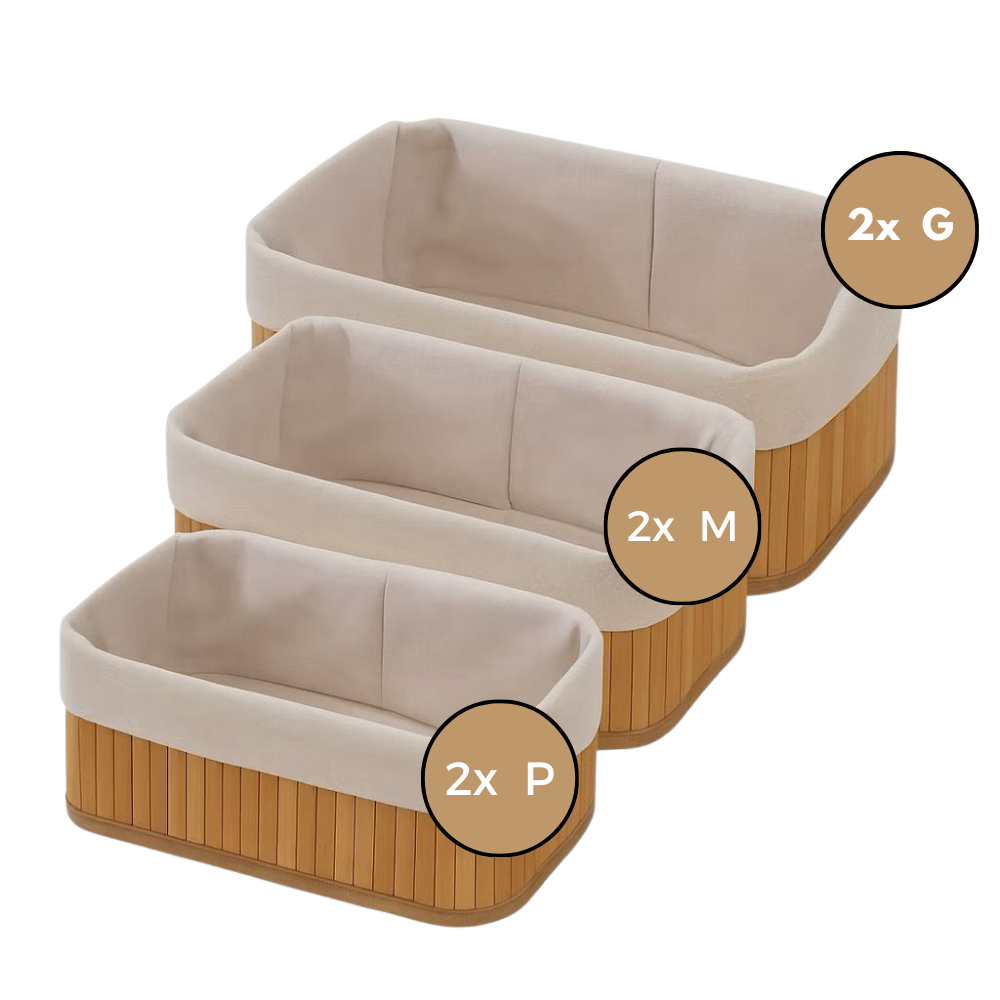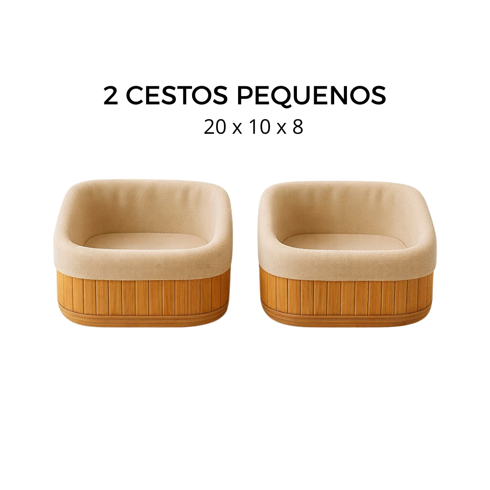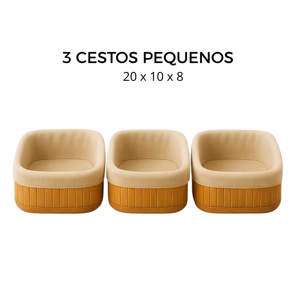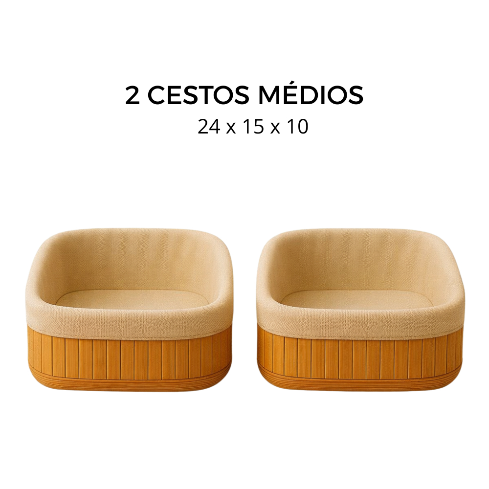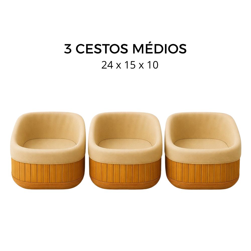Cesto Organizador de Bambu Multiuso Forro Organizador Objetos Quarto Roupa Banheiro