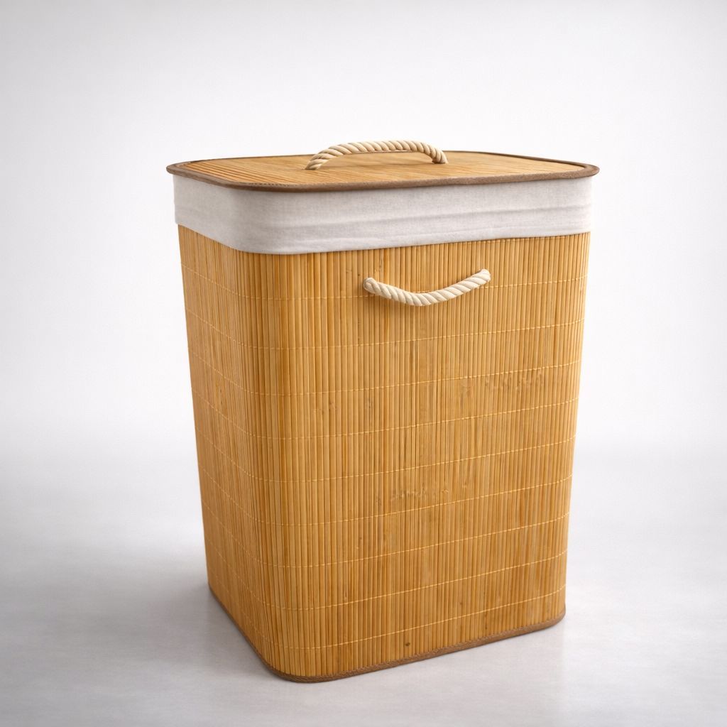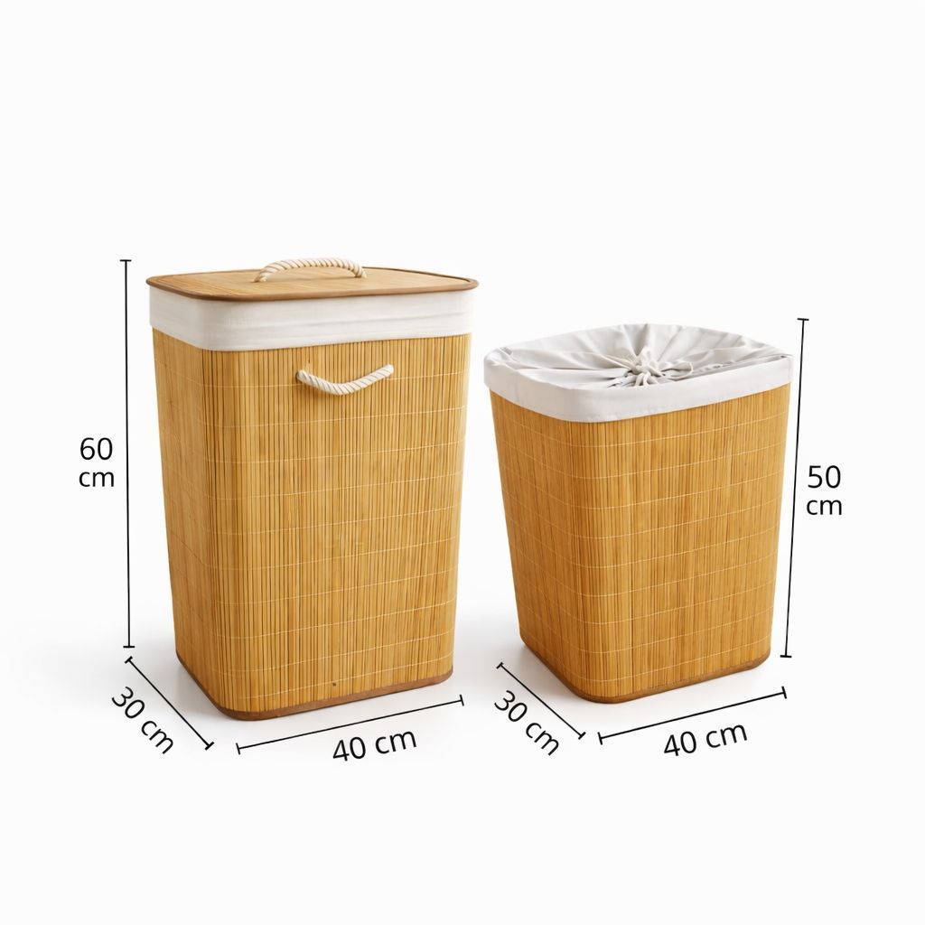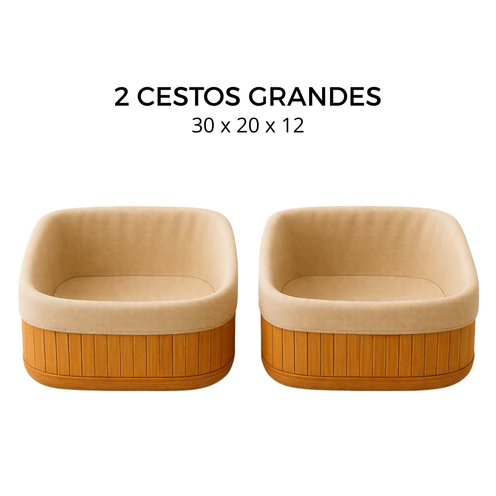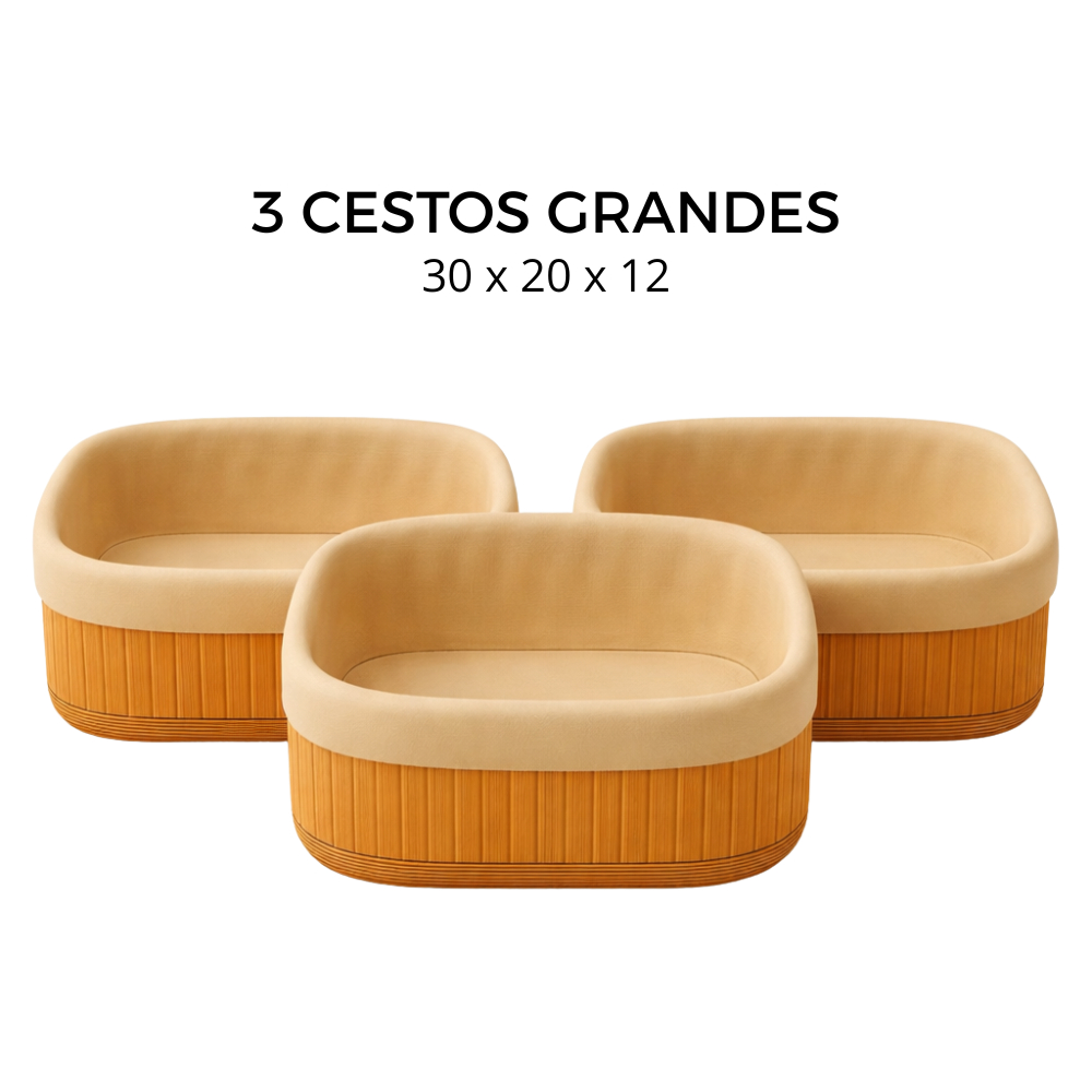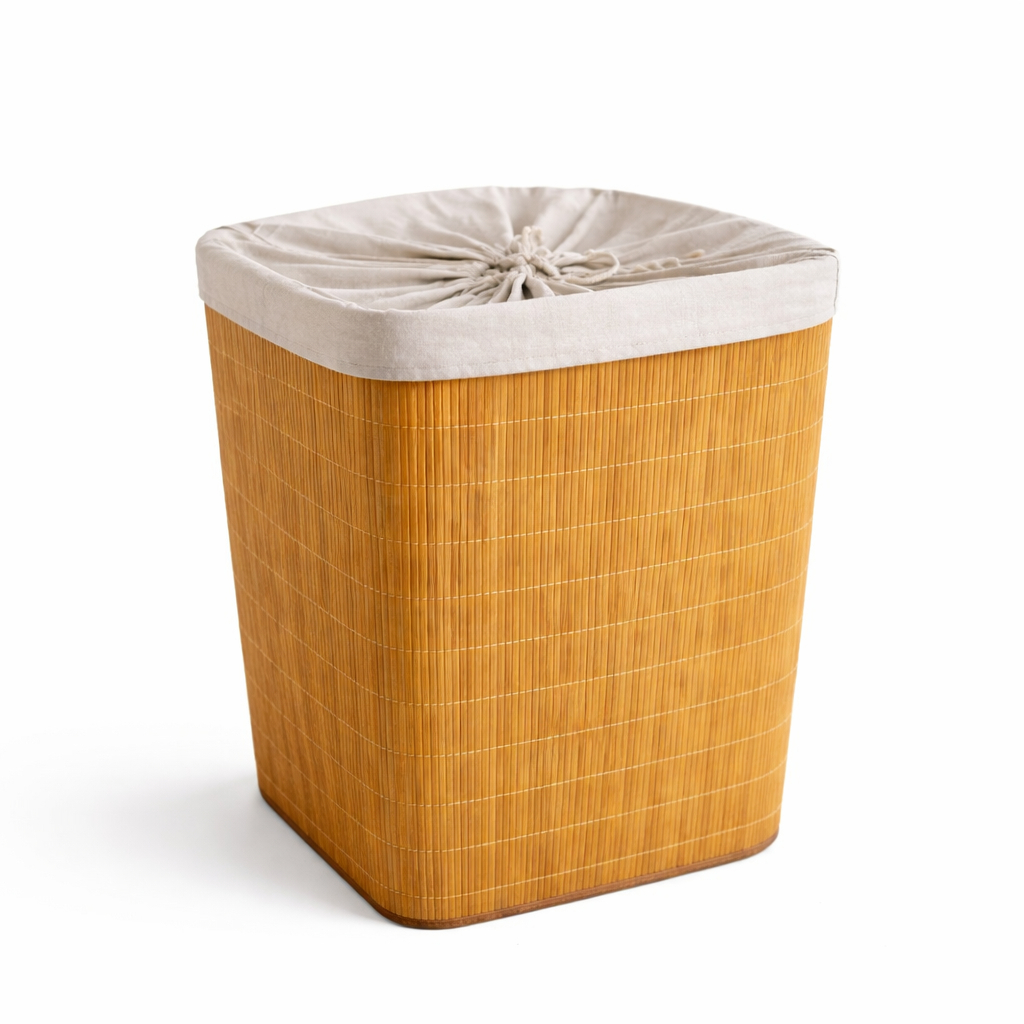 Cesto Organizador de Bambu Multiuso Forro Organizador Objetos Quarto Roupa Banheiro