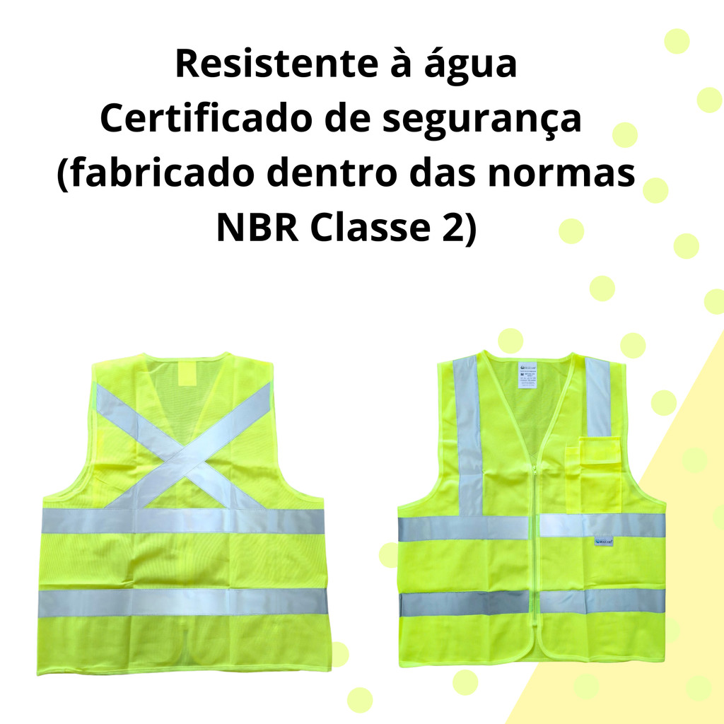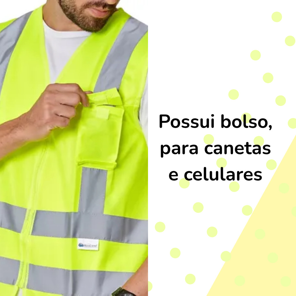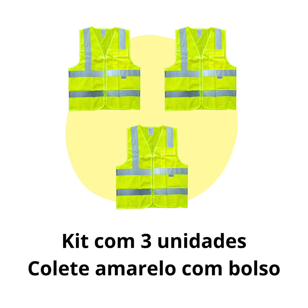 Kit 3 Colete Brascamp Com Bolso EPI NR06 Faixa Refletiva Alta Visibilidade Para Obra Construção e Logística