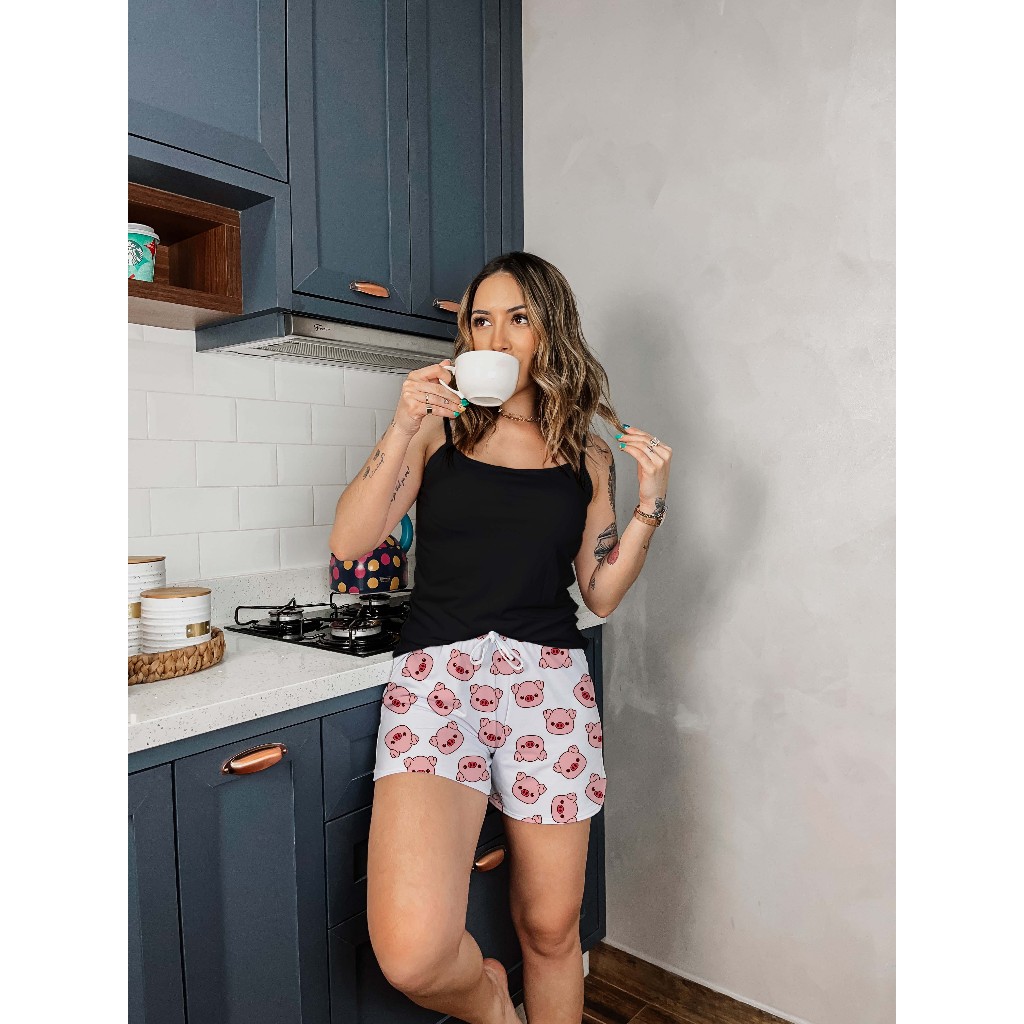 Kit 3 Conjuntos Baby Doll Preto + Shorts Estampas Sortidas Aleatórias