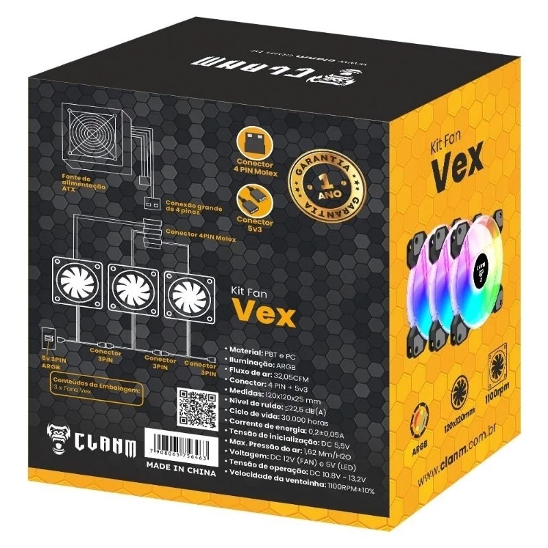 Kit 3 Cooler Fan VEX - ARGB - 3PIN - CLANM