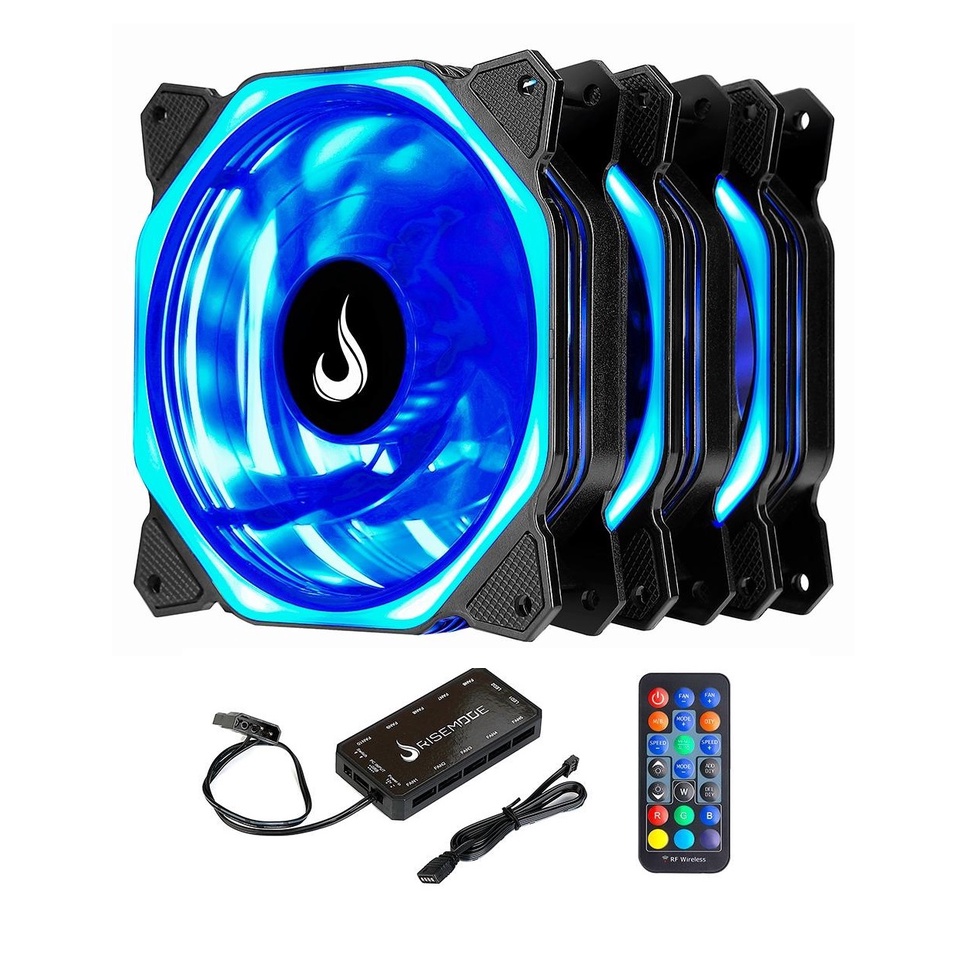 Kit 3 Coolers Fans Ventoinhas Para PC Gabinete 120mm Led RGB Aura Com Controladora e Controle Remoto Rise Mode