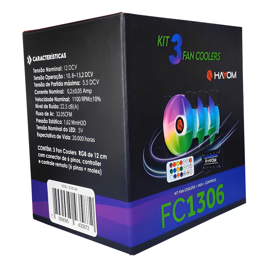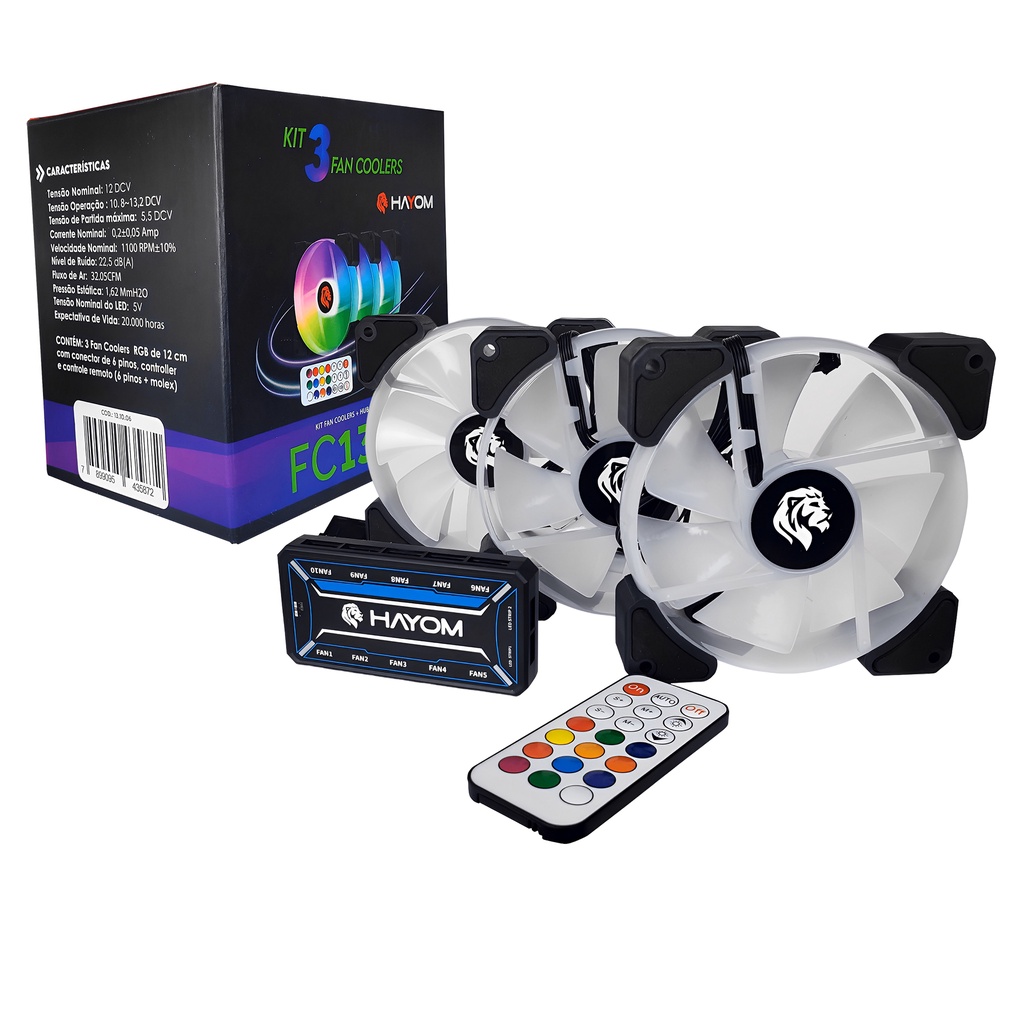 Kit 3 Coolers Fans Ventoinhas Para PC Gabinete 120mm Led RGB Com Controladora e Controle Remoto