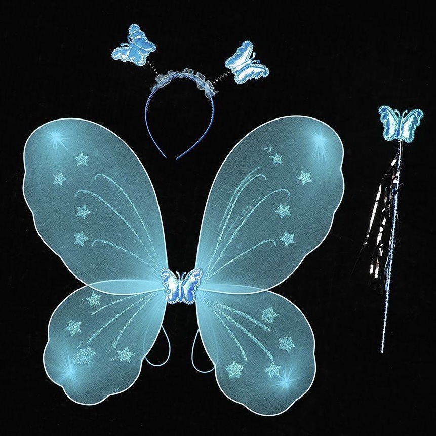 Kit 3 Fantasia Asa de Borboleta Fada Infantil+varinha+tiara