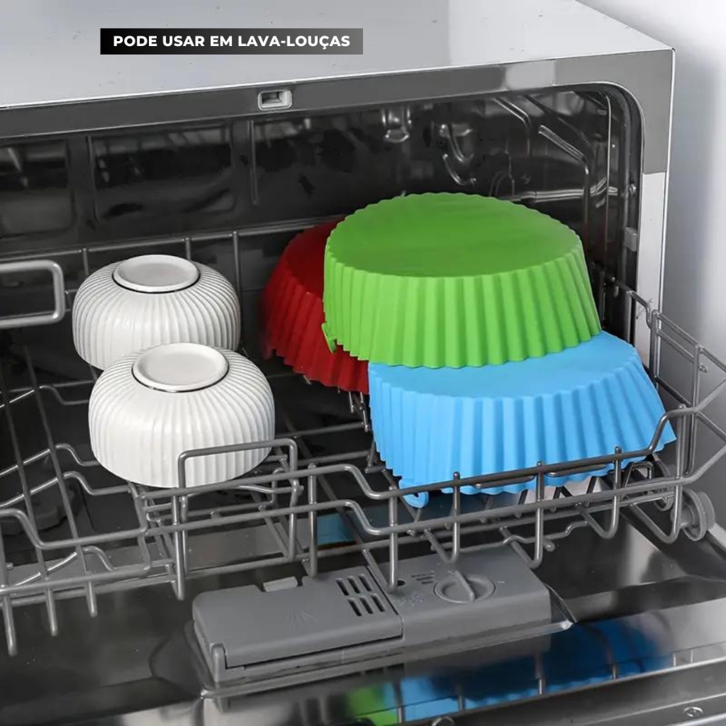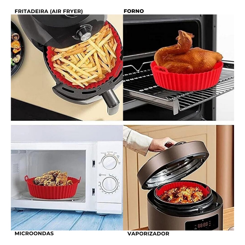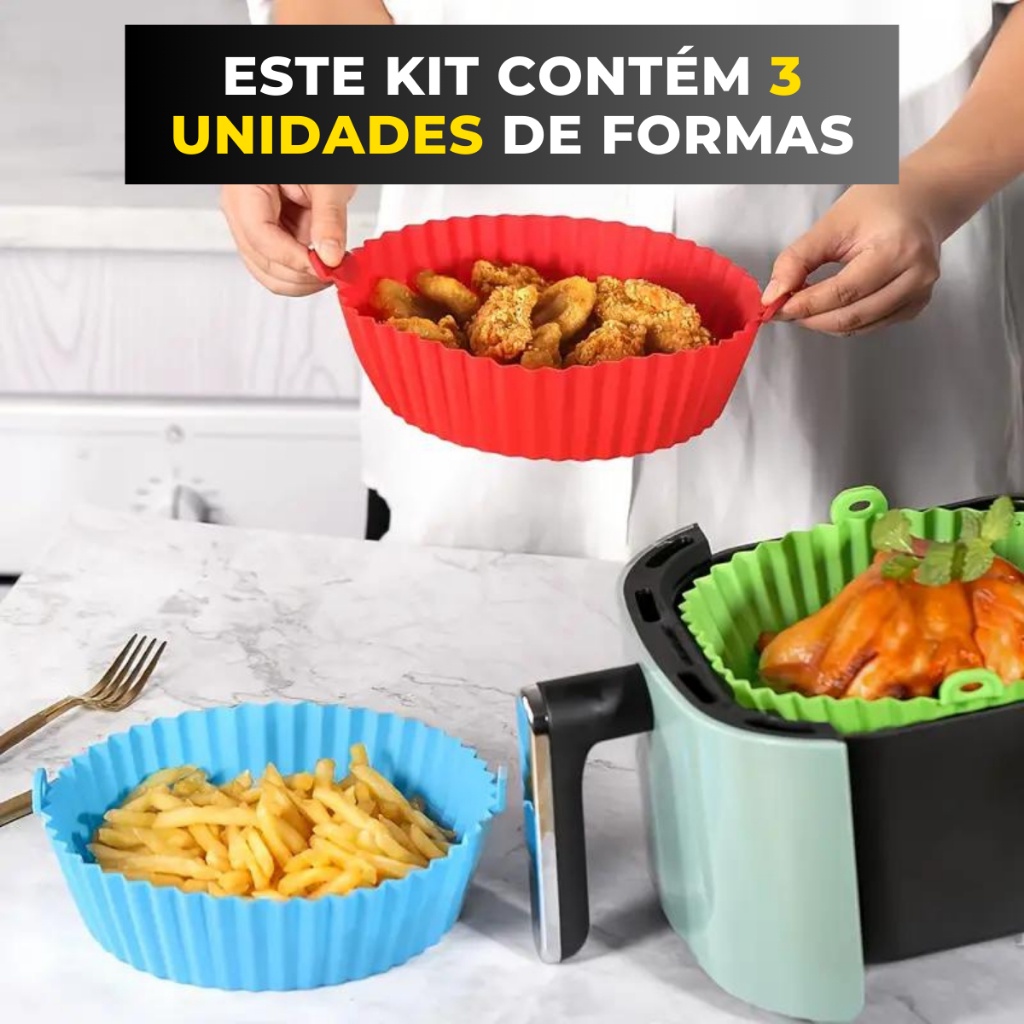 Kit 3 Forma Assadeira Para Fritadeira Air Fryer Em Silicone Flexível Lavável
