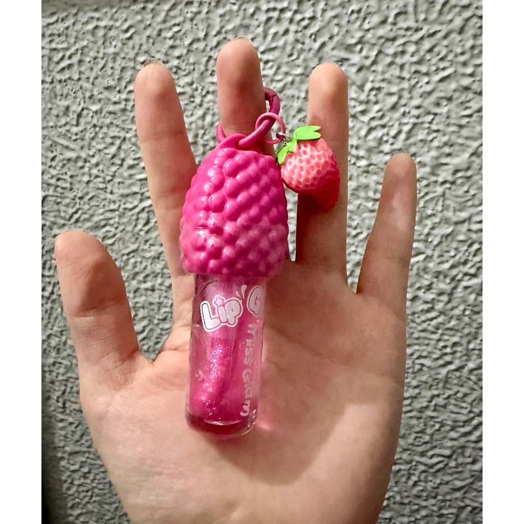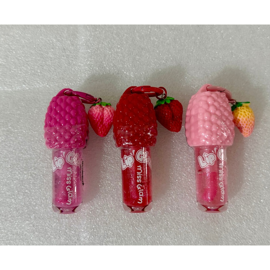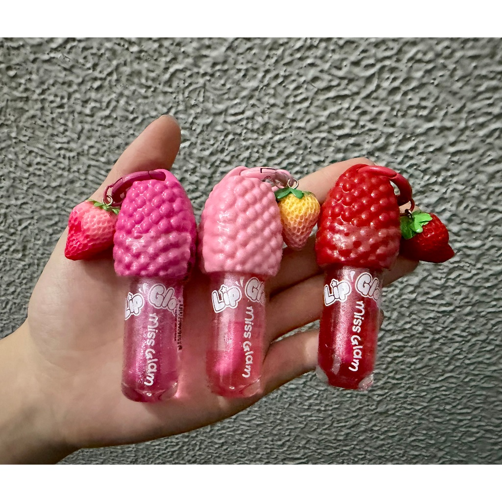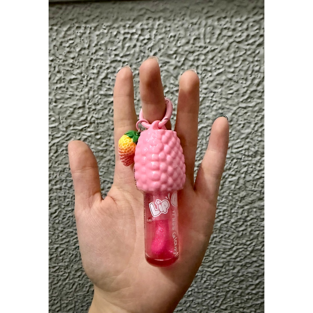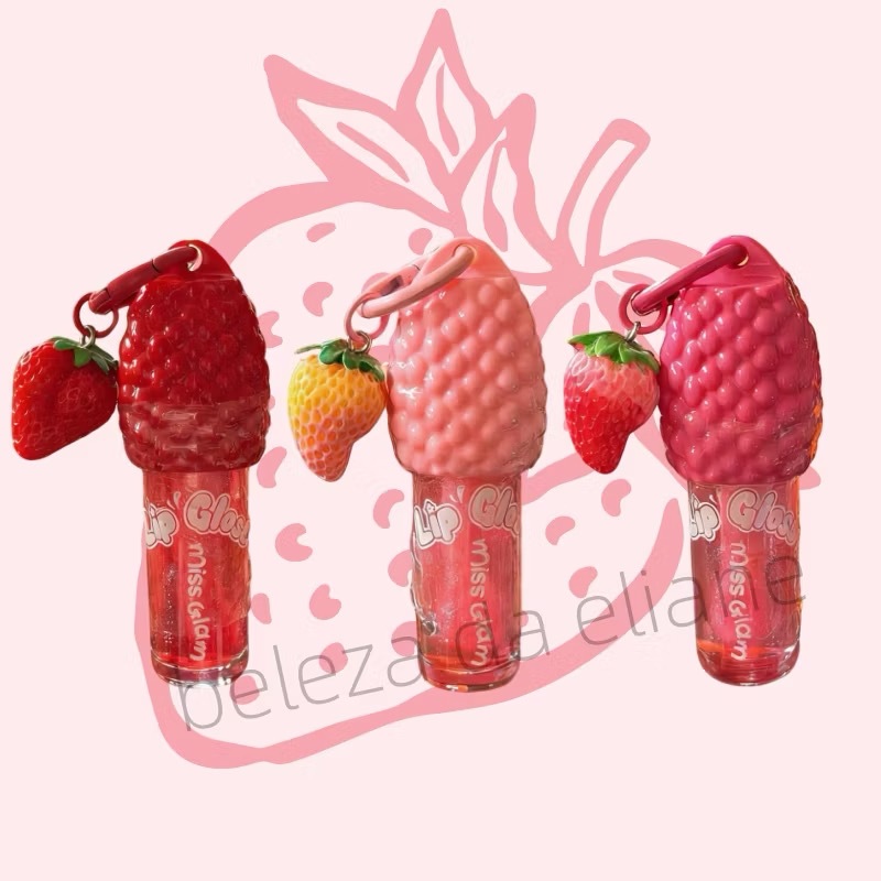 Kit 3 Gloss labial hidratante com aroma de morango que muda de cor, vem com um chaveiro, um presente encantador.