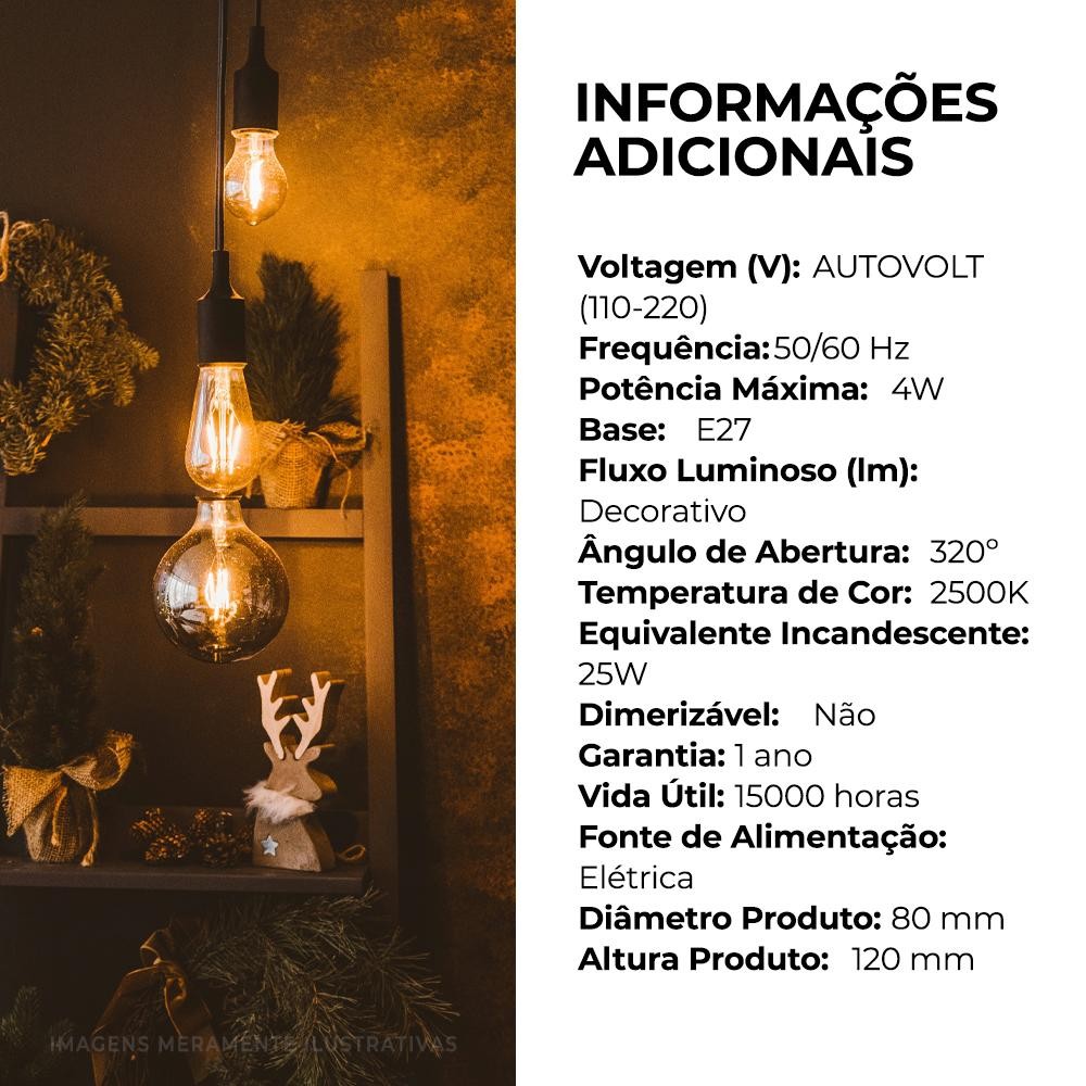 Kit 3 Lâmpadas de Filamento LED Flite G80, 4W, FLT-G80-4W