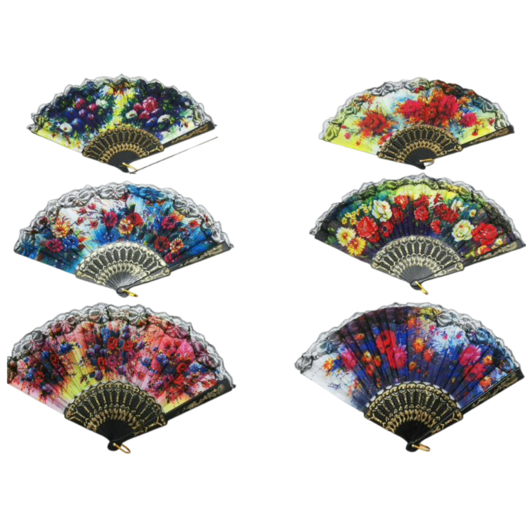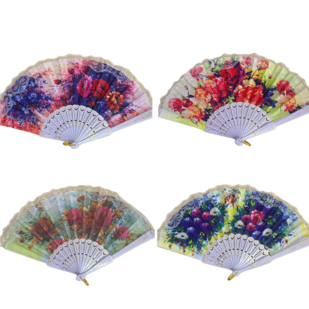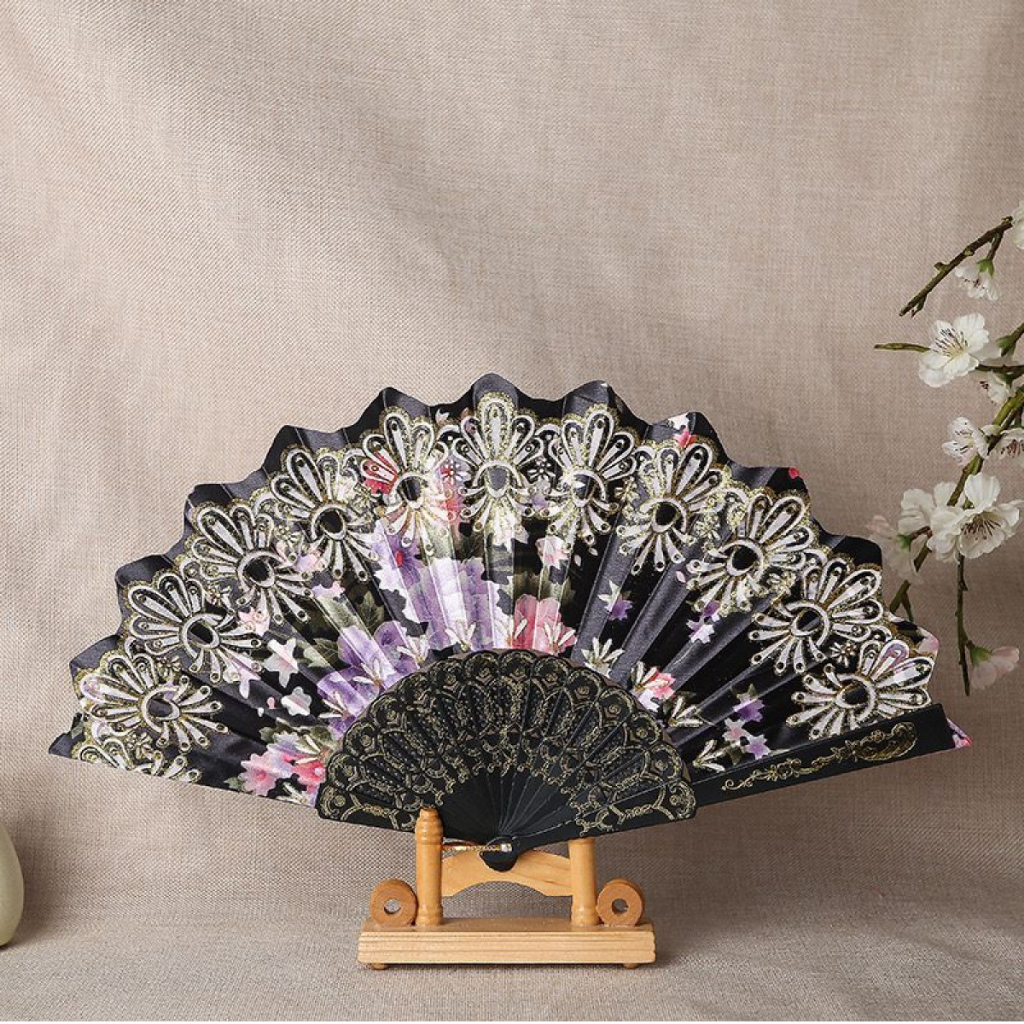 Kit 3 Leque de tecido estampado Dobrável Paetê Luxo com Decoração Brilho para Abanar