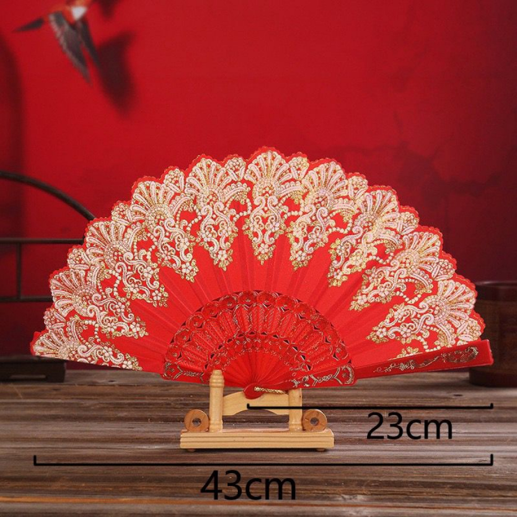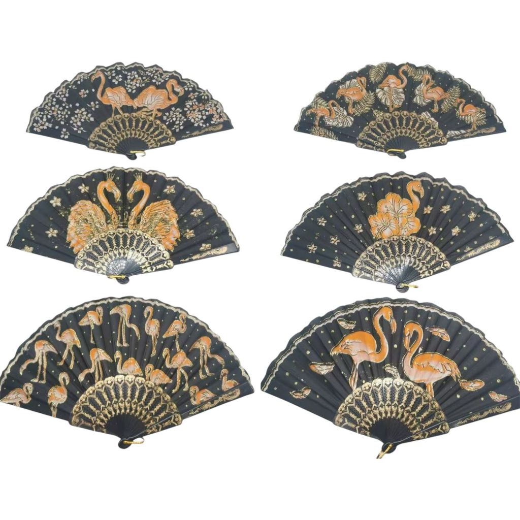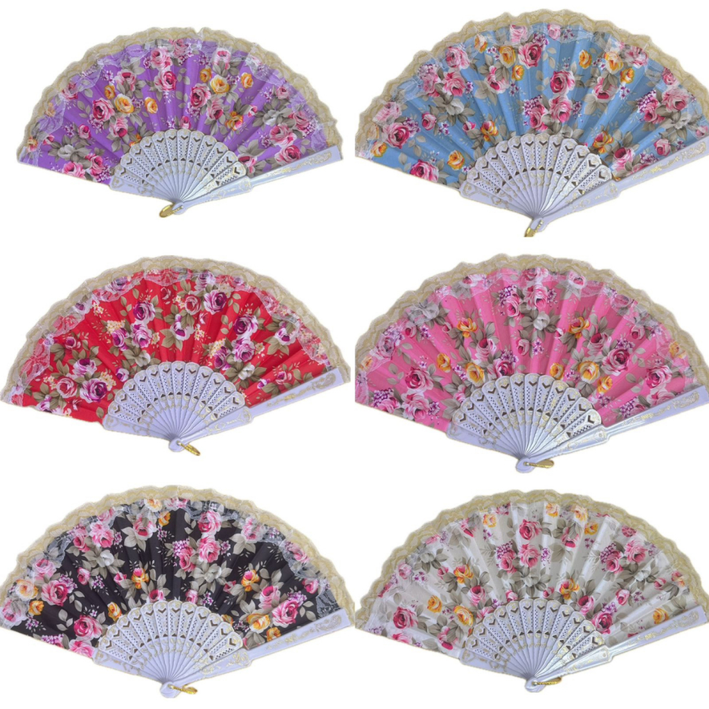 Kit 3 Leque de tecido estampado Dobrável Paetê Luxo com Decoração Brilho para Abanar