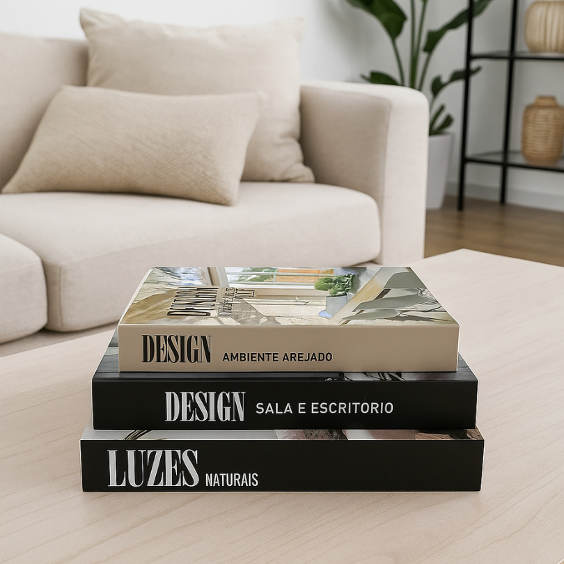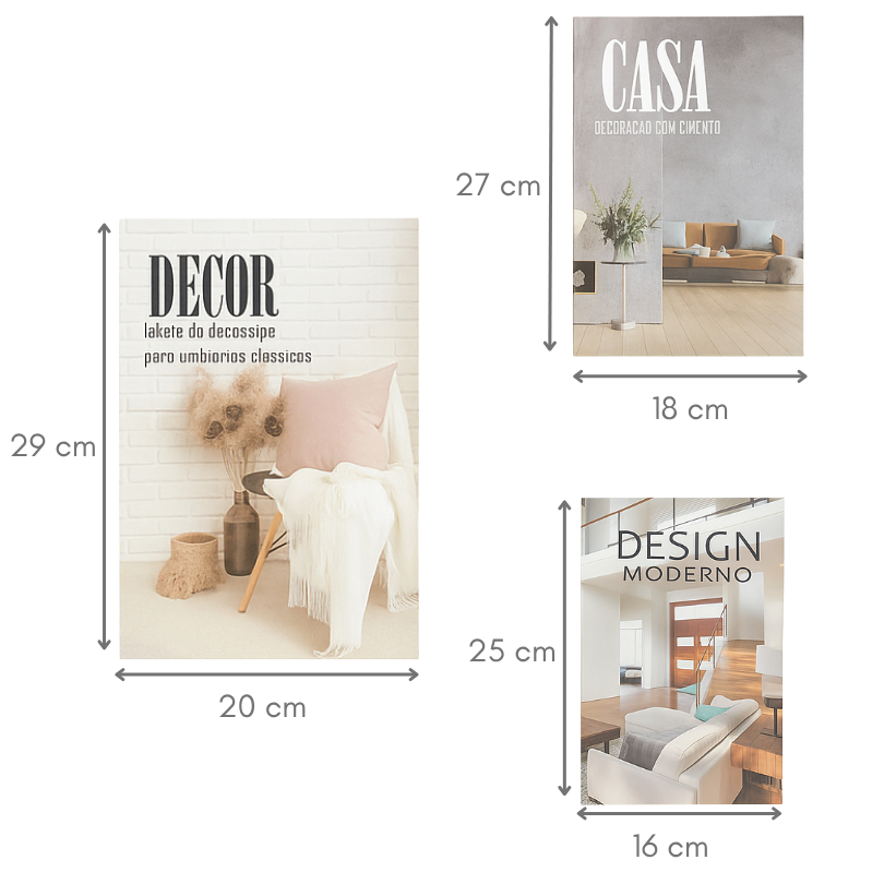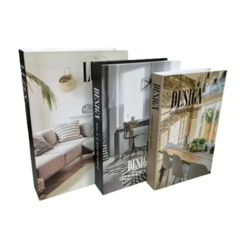 Kit 3 Livros Decorativos Fake Caixa Organizadora Porta Objetos Decoração Sala Escritório Estante