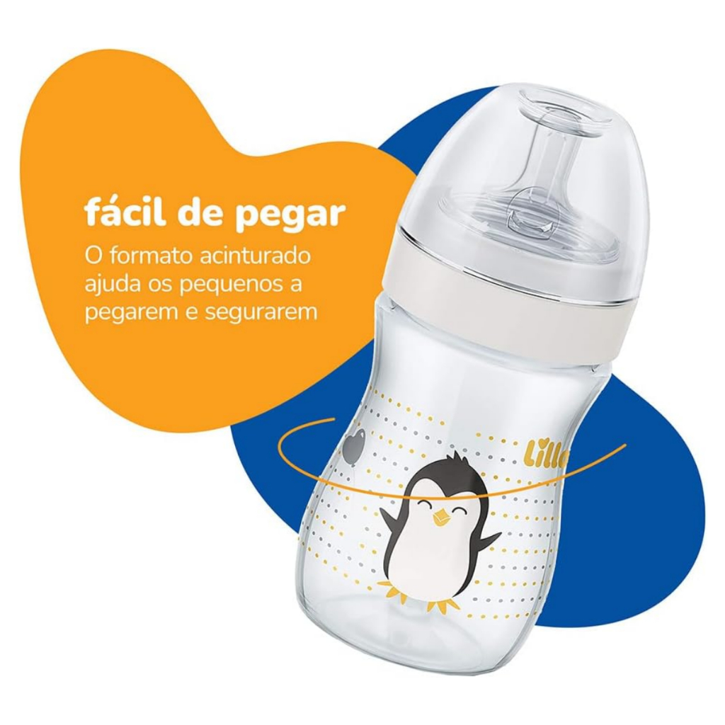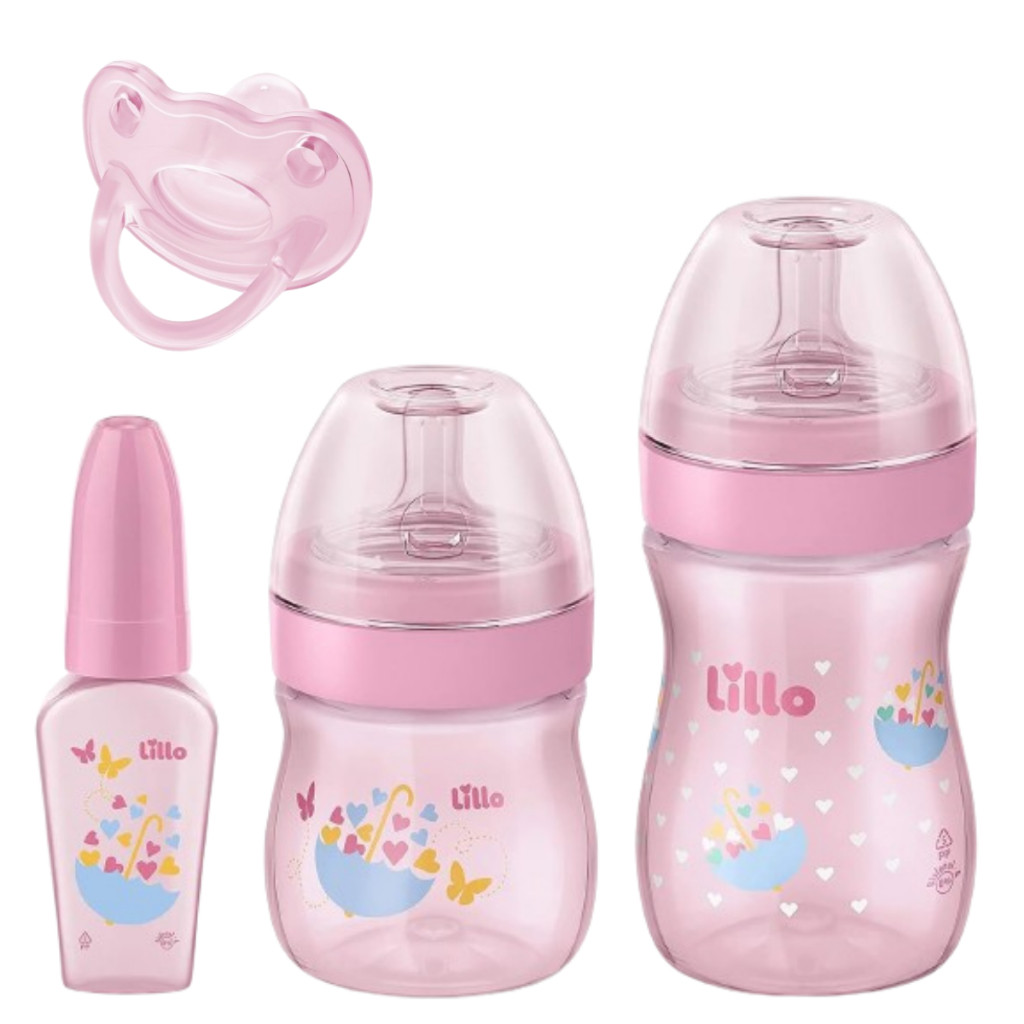 Kit 3 Mamadeiras Lillo Bico Reto com Chuquinha e Chupeta Ortodôntica 0-6 meses 100% Silicone